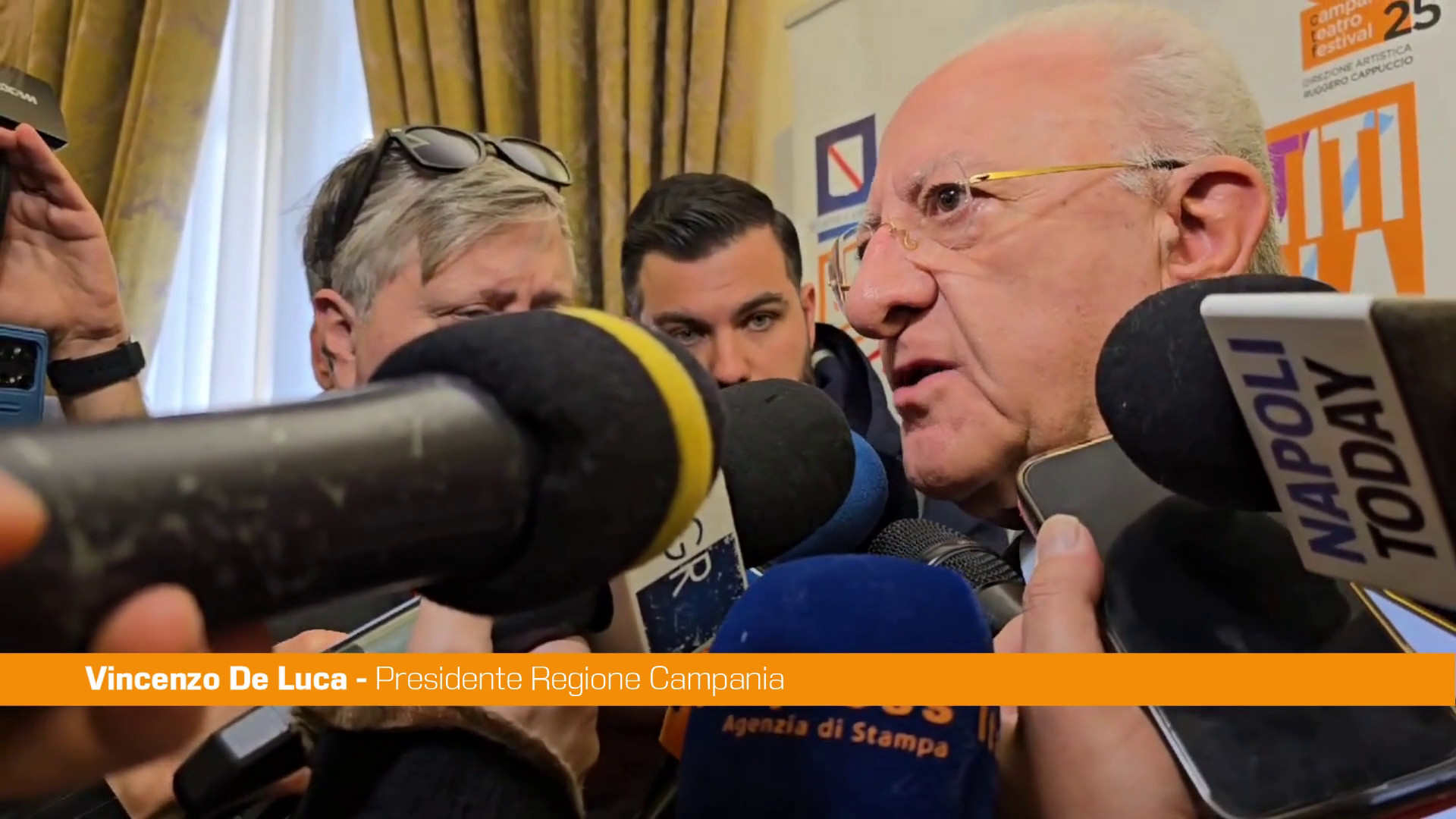 NAPOLI (ITALPRESS) – “Noi faremo con maggiore forza questa richiesta. Credo almeno per le attività economiche inserite nell’area a rischio, che è un’area perimetrale, non si può fare per tutta la Regione” . Lo ha detto il governatore della Regione Campania Vincenzo De Luca a margine della conferenza stampa di presentazione della 18esima edizione di Campania Teatro Festival in merito alla richiesta al governo di sospendere mutui per le case nell’area dei Campi Flegrei e di sostenere le attività economiche nell’area a rischio. “Ma in quell’area a rischio – ha proseguito il governatore – credo sia ragionevole sospendere, per chi ha dei mutui per la casa, il pagamento delle rate dei mutui e per le attività commerciali, artigianali, sospendere i pagamenti dei contributi. È un piccolo aiuto perché è evidente che si stanno determinando, come dire, cali anche nelle attività economiche”.