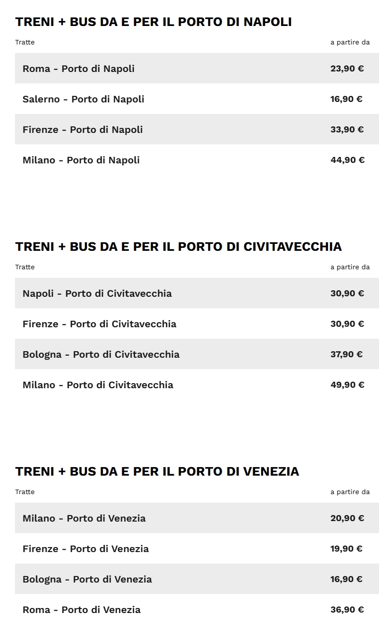 MINI GUIDA: COME RAGGIUNGERE I PORTI DI VENEZIA, CIVITAVECCHIA E NAPOLI CON ITALO