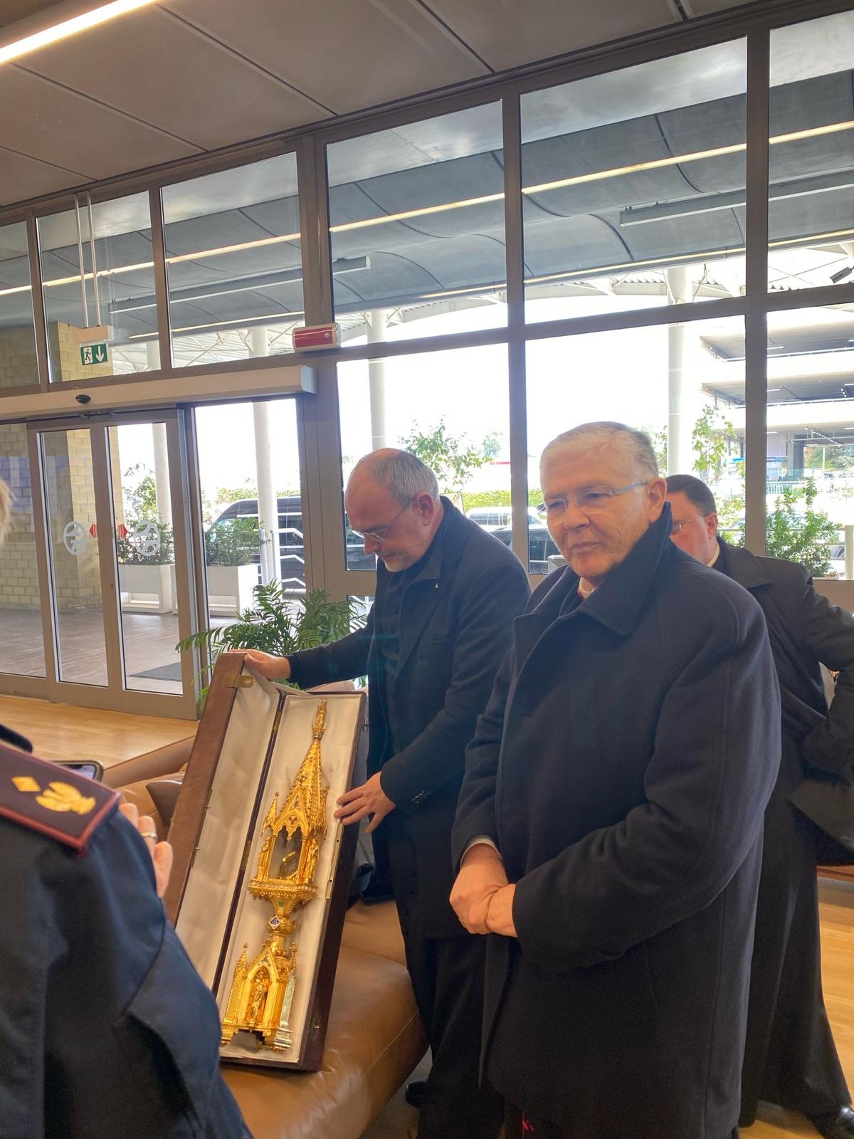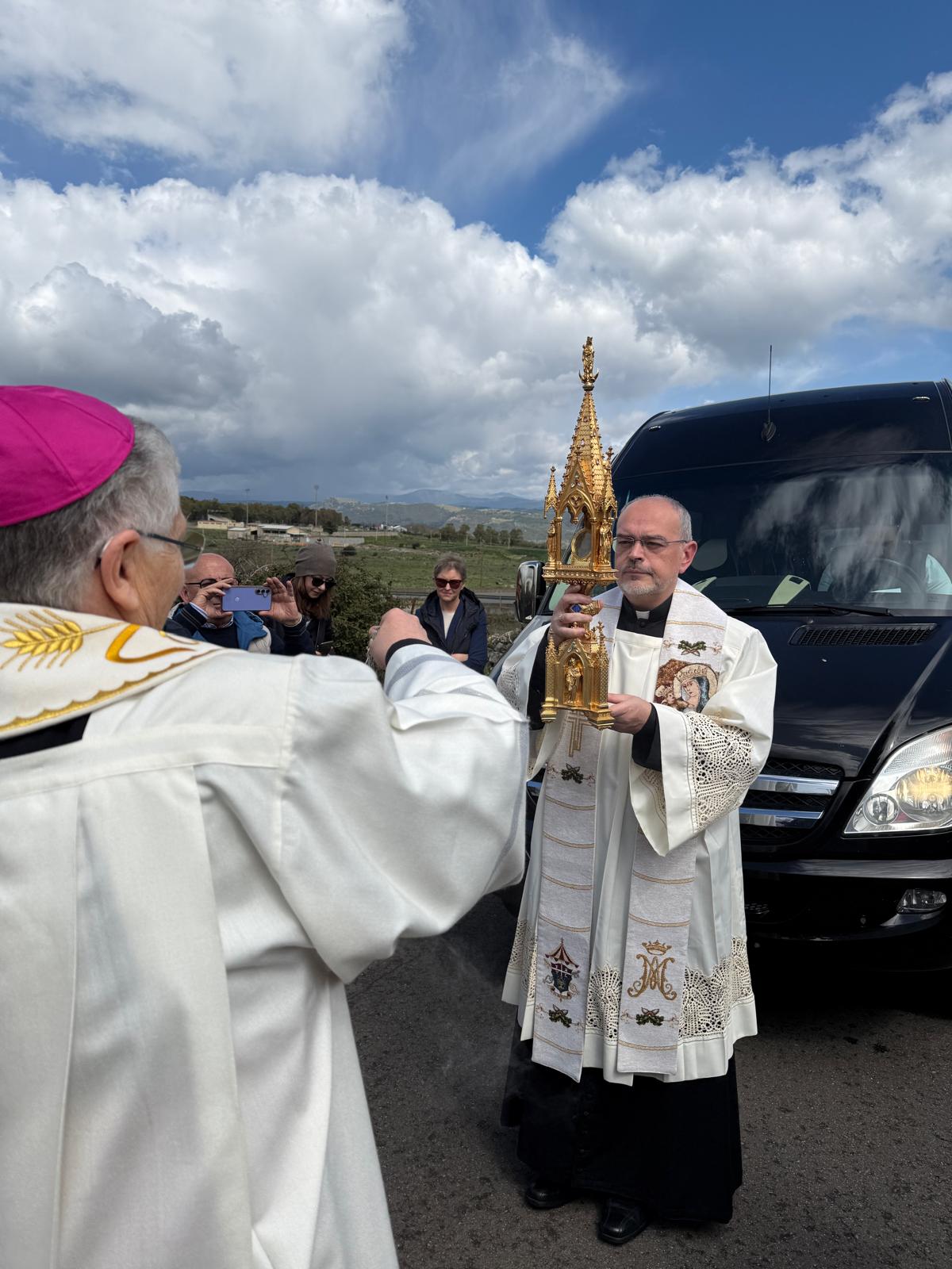 Nella mattinata di giovedì 27 marzo il Vescovo di Viterbo Mons. Orazio Francesco Piazza è atterrato all’aeroporto di Cagliari con la reliquia. Poi l’arrivo nel centro della Sardegna a Nurri dove tutta la cittadinanza ha accolto il Vescovo e il Cuore con singolare devozione e grande partecipazione. Presenti il Vicario Generale don Luigi Fabbri e il Vicario episcopale per le tradizioni, cultura e formazione don Massimiliano Balsi.
