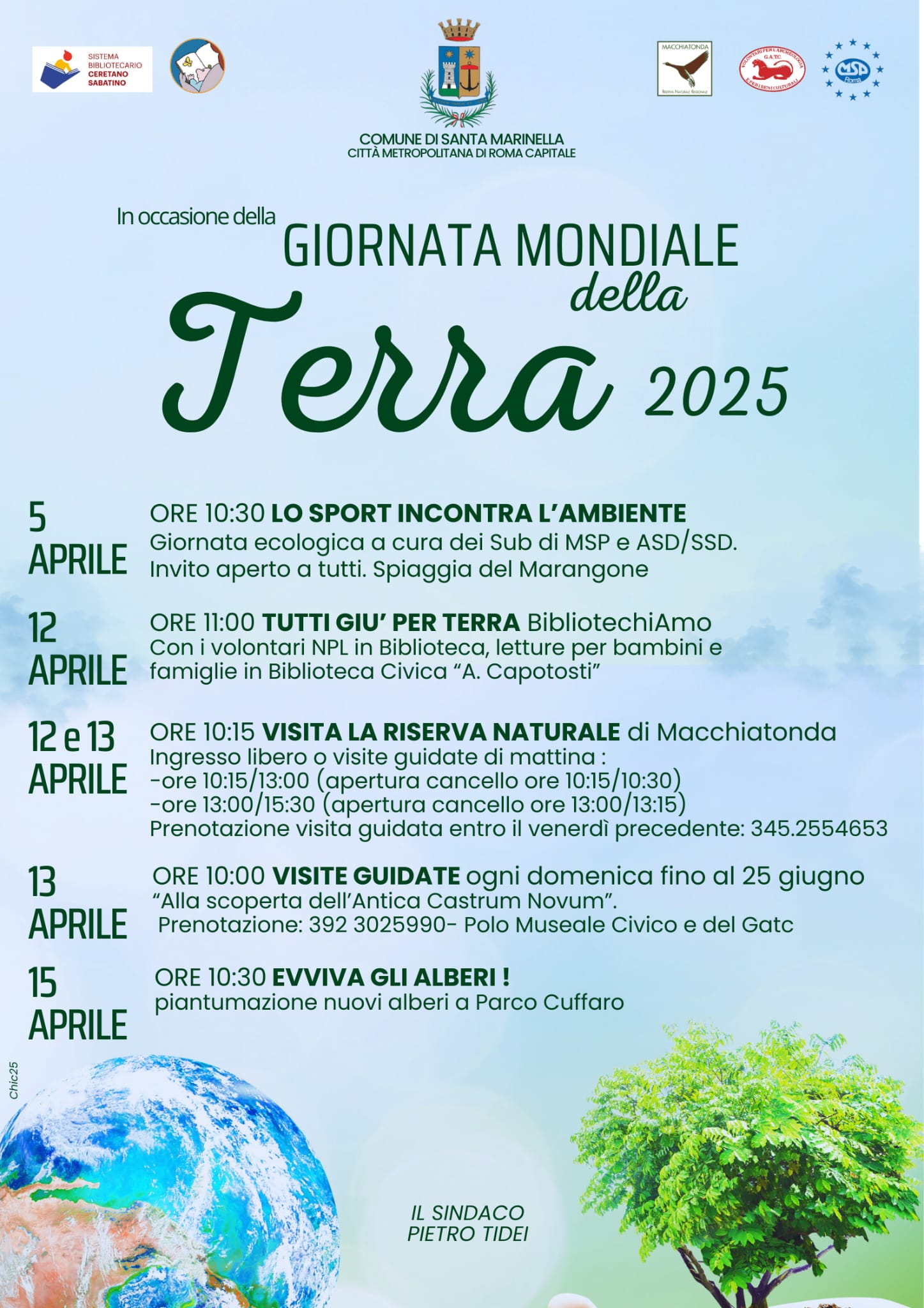 Una serie di iniziative che prevedono tra l’altro visite guidate ai fiori all’occhiello della cittadina tirrenica: le attrazioni storico-naturalistiche più importanti, da Castrum Novum alla riserva di Macchiatonda. “Abbiamo pensato per il secondo anno consecutivo di riunire in un unico programma le attività organizzate e promosse nel nostro Comune – annuncia il Sindaco Tidei, che spiega – attraverso iniziative culturali e ecologiche desideriamo sensibilizzare i cittadini su una sostenibilità più ampia, capace di intrecciare ambiente, cultura e inclusione sociale. Questa giornata è un invito a riflettere e a celebrare insieme la nostra capacità di immaginare un mondo più sostenibile”. Da via Cicerone 25 mostrano il programma completo, spiegato nel dettaglio: “Avvio sabato 5 aprile alle ore 10:30 con la 5° edizione di Lo sport incontra l’ambiente a cura dell’associazione MSP, che si dedicherà alla raccolta di materiale di scarto sulla spiaggia del Marangone. L’iniziativa è aperta a tutti coloro che vorranno dare il proprio contributo. Sabato 12 aprile alle ore 11:00 i volontari di NPL accoglieranno i bambini e le bambine in Biblioteca per le letture di Tutti giù per Terra, una serie di racconti a tema ambientale. Lo stesso fine settimana sarà possibile visitare la Riserva naturale di Macchiatonda. Il cancello si aprirà per l’ingresso dalle ore 10:15 alle ore 10:30 con uscita alle ore 13:00 e poi dalle ore 13:00 alle 13:15 con uscita alle ore 15:30. Domenica 13 aprile alle ore 10:00 per chi ama l’archeologia è possibile visitare gli scavi di Castrum Novum, a cura del Polo Museale civico e del Gatc. Giovedì 15 aprile alle ore 10:30 Evviva gli alberi, nuove piantumazioni al Parco Cuffaro.