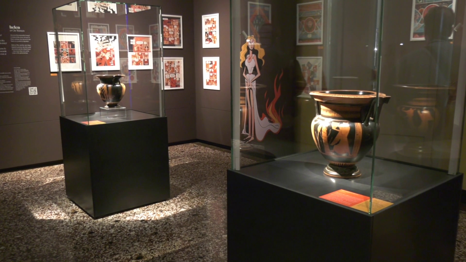 Saranno esposte, per circa un anno, quattro opere selezionate dalla collezione di ceramiche attiche e magnogreche di Intesa Sanpaolo, che saranno poste a confronto con l’arte del fumetto, su quattro temi attuali correlati ad altrettanti personaggi della mitologia: Elena o delle donne; Dioniso o della diversità; Aiace o dei conflitti; Eros o del desiderio.