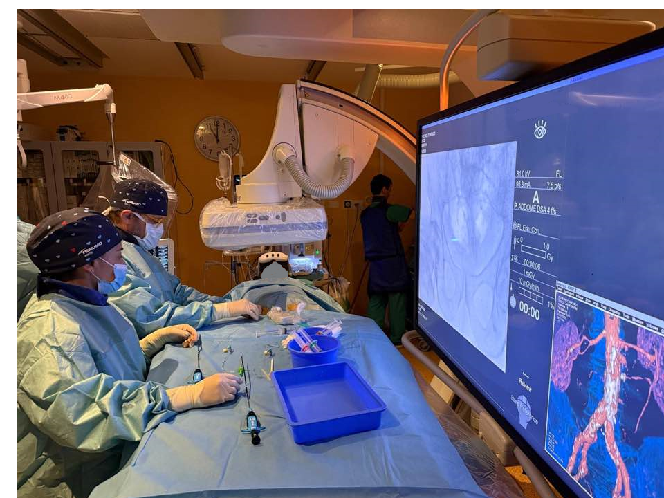 L’intervento è stato eseguito dalle equipe delle unità operative di Chirurgia vascolare e di Radiologia vascolare e interventistica. Obiettivo: alleviare i disagi legati a una procedura lunga e a volte dolorosa.