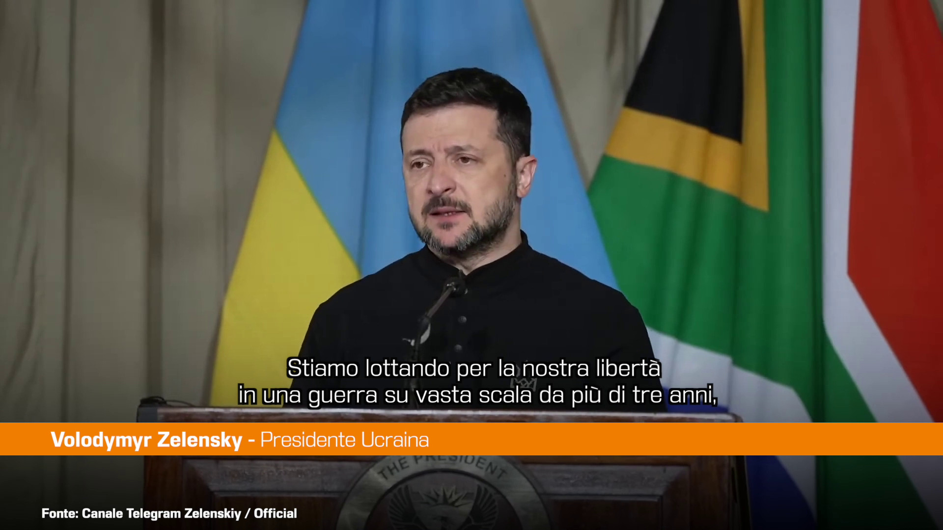 PRETORIA (SUDAFRICA) (ITALPRESS) – “Stiamo lottando per la nostra libertà in una guerra su vasta scala da più di tre anni, stiamo lottando contro l’occupazione russa, contro l’umiliazione del nostro popolo, contro ogni prepotenza nei confronti dell’Ucraina e degli ucraini. Stamattina il nostro paese ha subito un nuovo attacco russo su larga scala”. Lo ha detto il presidente ucraino Volodymyr Zelensky, in visita a Pretoria, in Sudafrica.