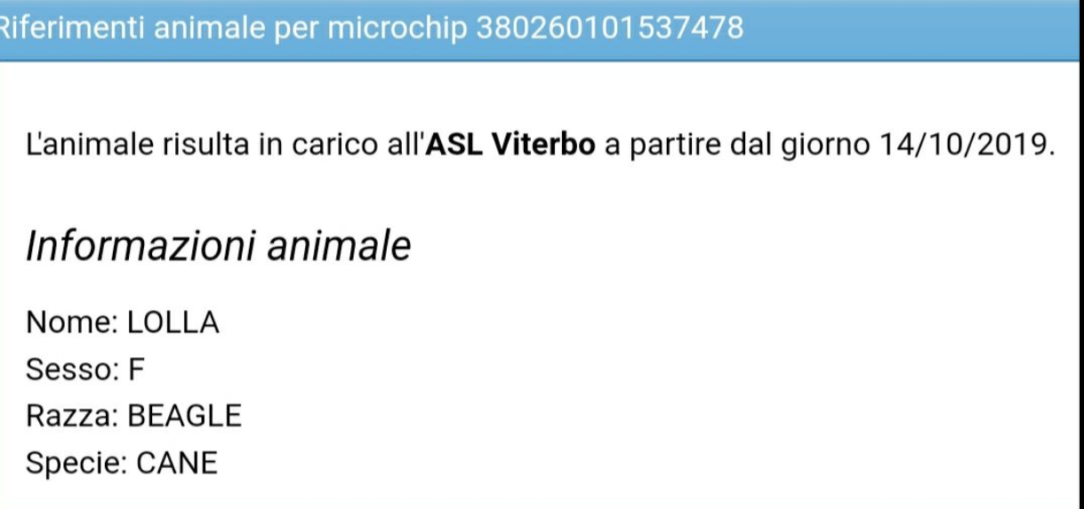 Immediate partono centinaia di condivisioni e si risale alla provenienza del chip, registrato alla Asl di Viterbo.