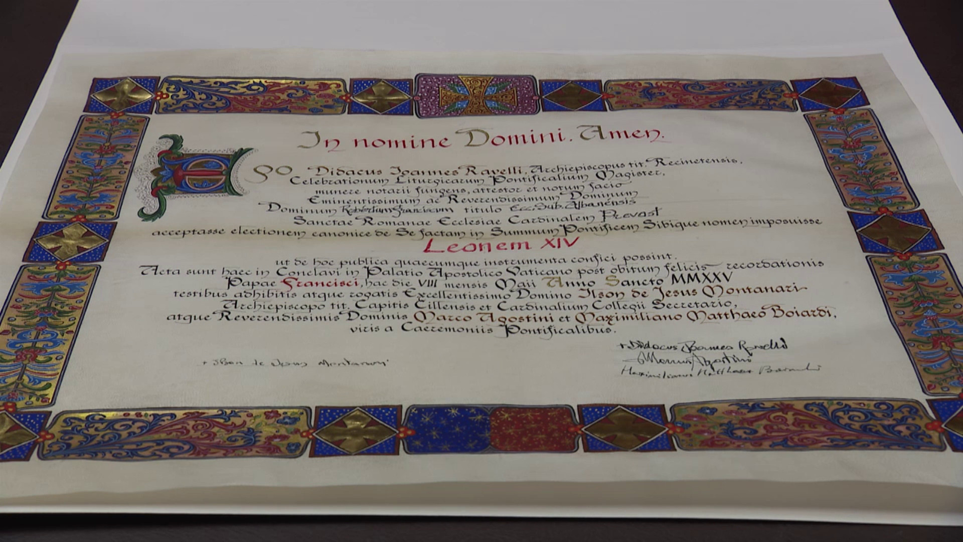 CITTA’ DEL VATICANO (ITALPRESS) – Nelle immagini fornite dalla Santa Sede, il verbale di accettazione del Romano Pontefice e il nome Leone XIV, redatto dal Maestro delle Celebrazioni Liturgiche Pontificie con funzione di notaio.