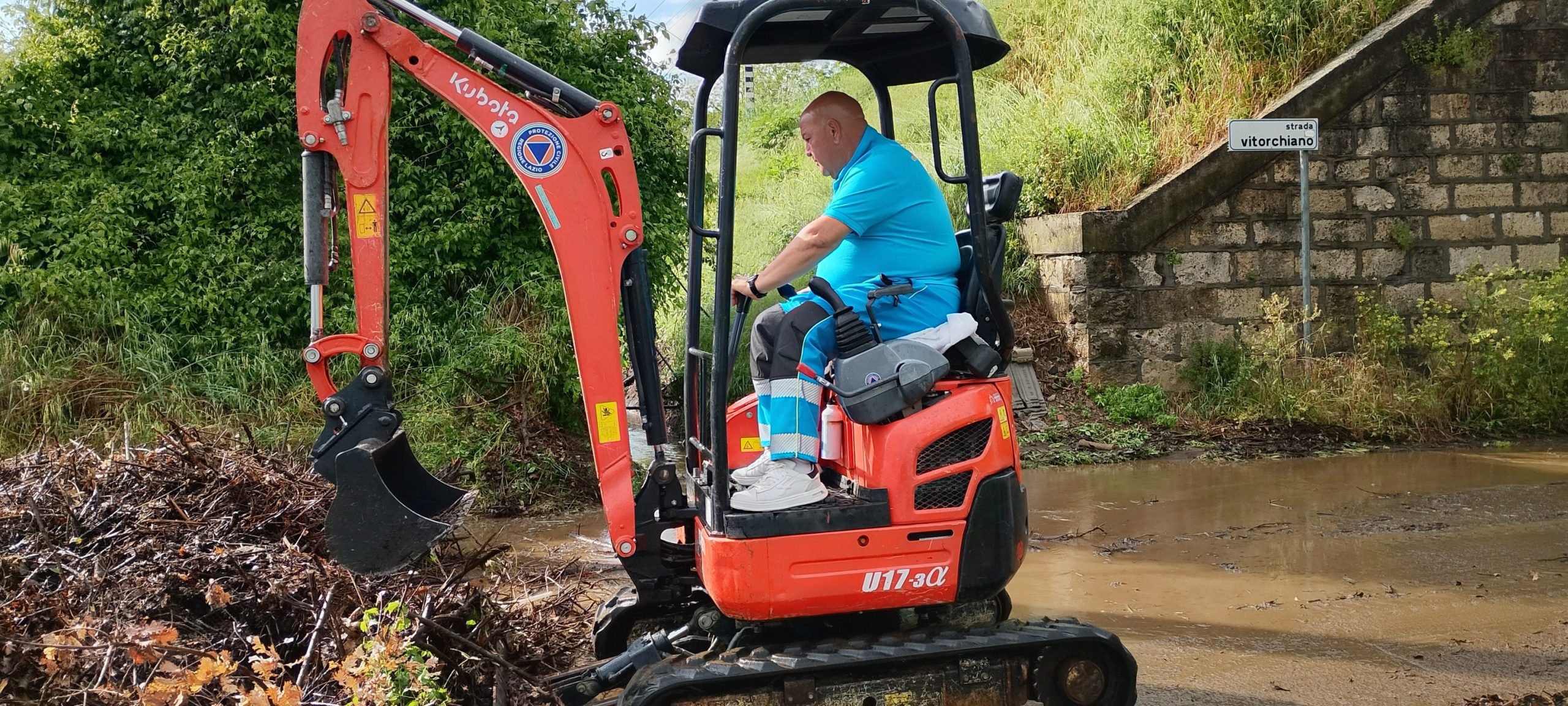 GROTTE (VT) – Intervento della protezione civile nella frazione di Viterbo dove la bomba d’acqua avvenuta nella giornata di ieri aveva fatto esondare il fosso di scolo tra all’incrocio di Strada Vitorchiano, Strada Bomarzo e Via delle Case.
