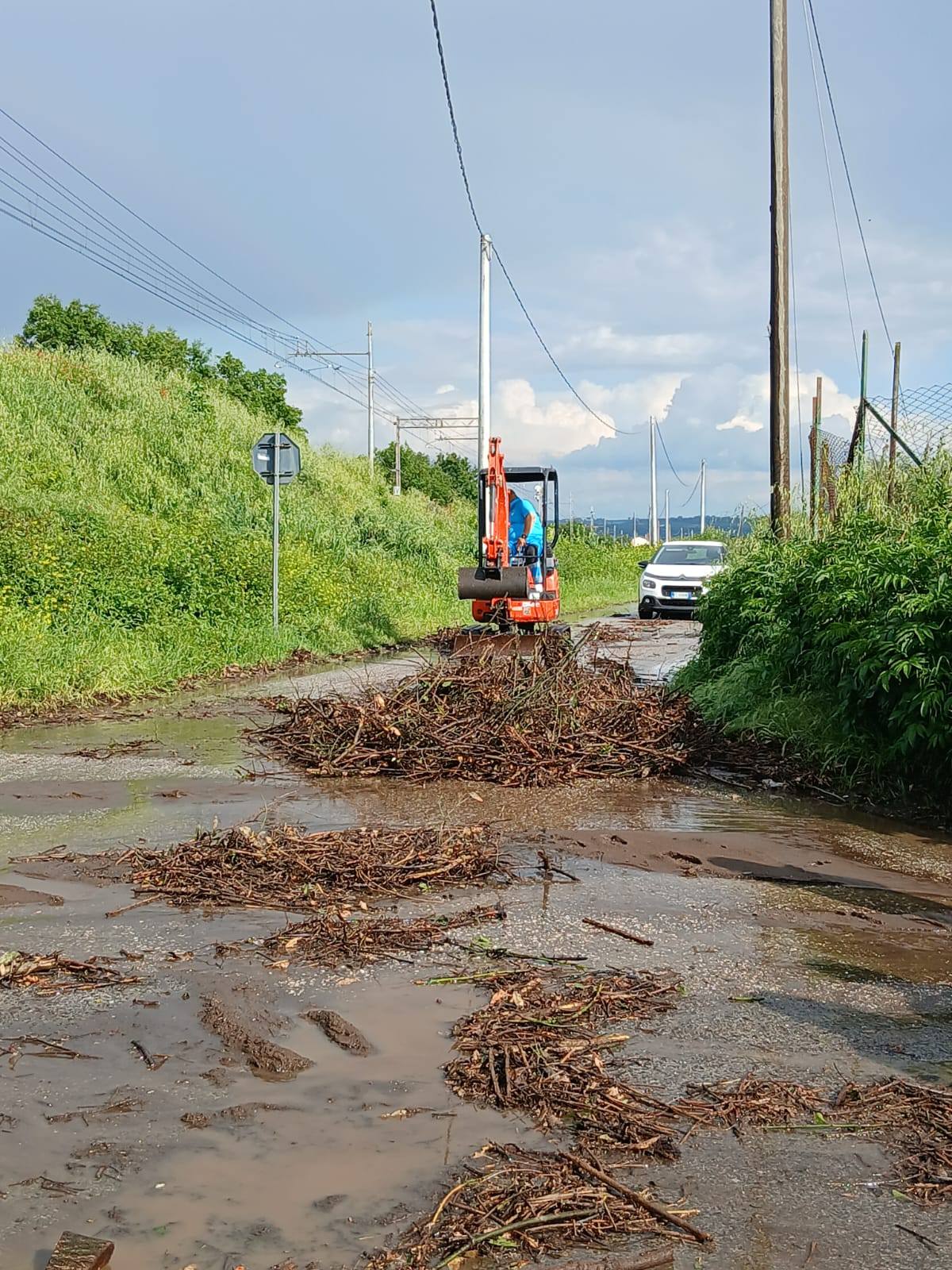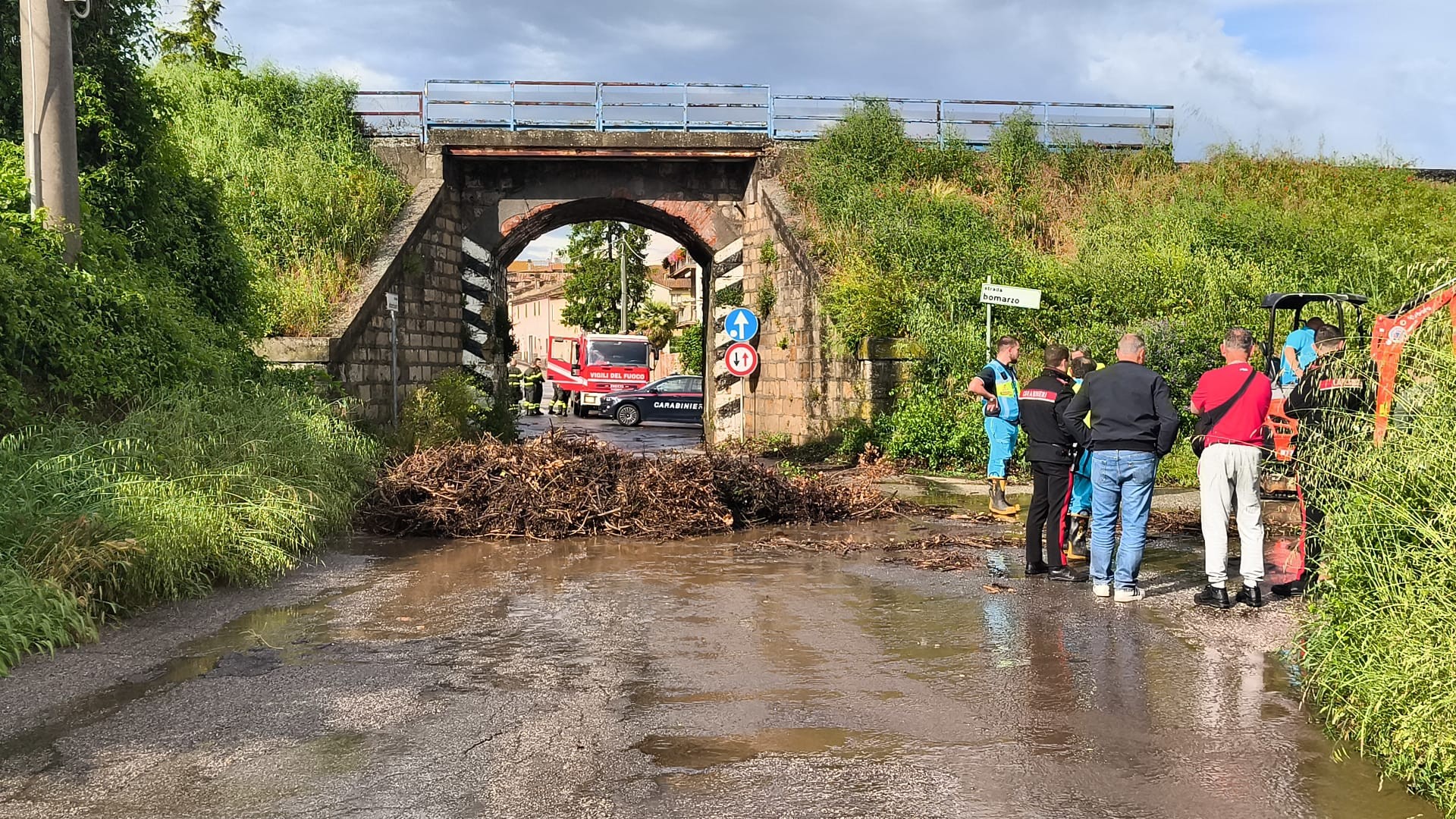 Grotte Santo Stefano – Bomba d’acqua fa esondare fosso di scolo, detriti bloccano la strada (FOTO)