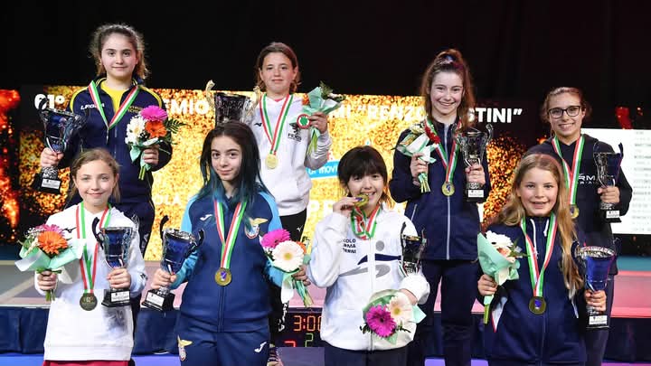 L’atleta Martina Della Piana si distingue fin dai gironi, vincendo 11 assalti su 12. Si posiziona al quarto posto nella classifica provvisoria.Vince nettamente (10:2) la prima diretta eliminatoria per i 32. Non viene messa in difficoltà neanche da un’atleta siciliana nella diretta per i 16 e vince 10:4. Vince nettamente (10:2) anche la successiva ed entra nella finalissima degli 8.Per il podio soffre un po’ contro un’atleta ariccina, ma alla fine Martina ha la meglio e vince 10:7.Entrare nella sala delle semifinali e finali con un pubblico numeroso gioca sicuramente sull’emozione ma Martina riesce a rimanere ben concentrata e vince contro un’atleta trapanese 10:7.L’assalto della finale è stato tanto desiderato quanto combattuto. Dopo un assalto equilibrato fino alla fine, si arriva al 9:9 e purtroppo la stoccata più importante viene assegnata all’avversaria. Un’ottima gara, gestita molto bene, dove Martina si laurea vicecampionessa Italiana nella sciabola femminile categoria bambine.