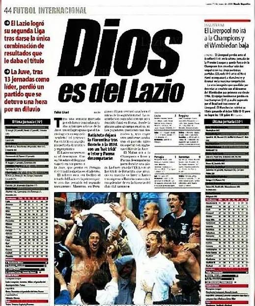 Una storia incredibile, uno scudetto divino, il Mundo Deportivo titolò “Dios es del Lazio”