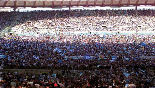 Lo speaker dell’Olimpico avvisò i tifosi laziali dell’imminente collegamento video con Perugia per seguire il secondo tempo della sfida tra gli umbri e la Juventus. Il collegamento saltò per cui alla folla laziale, che nel frattempo aveva invaso il prato dell’Olimpico, giunse la “voce amica” di Riccardo Cucchi, grandissimo tifoso della Lazio, dalle frequenze di Radio Rai.