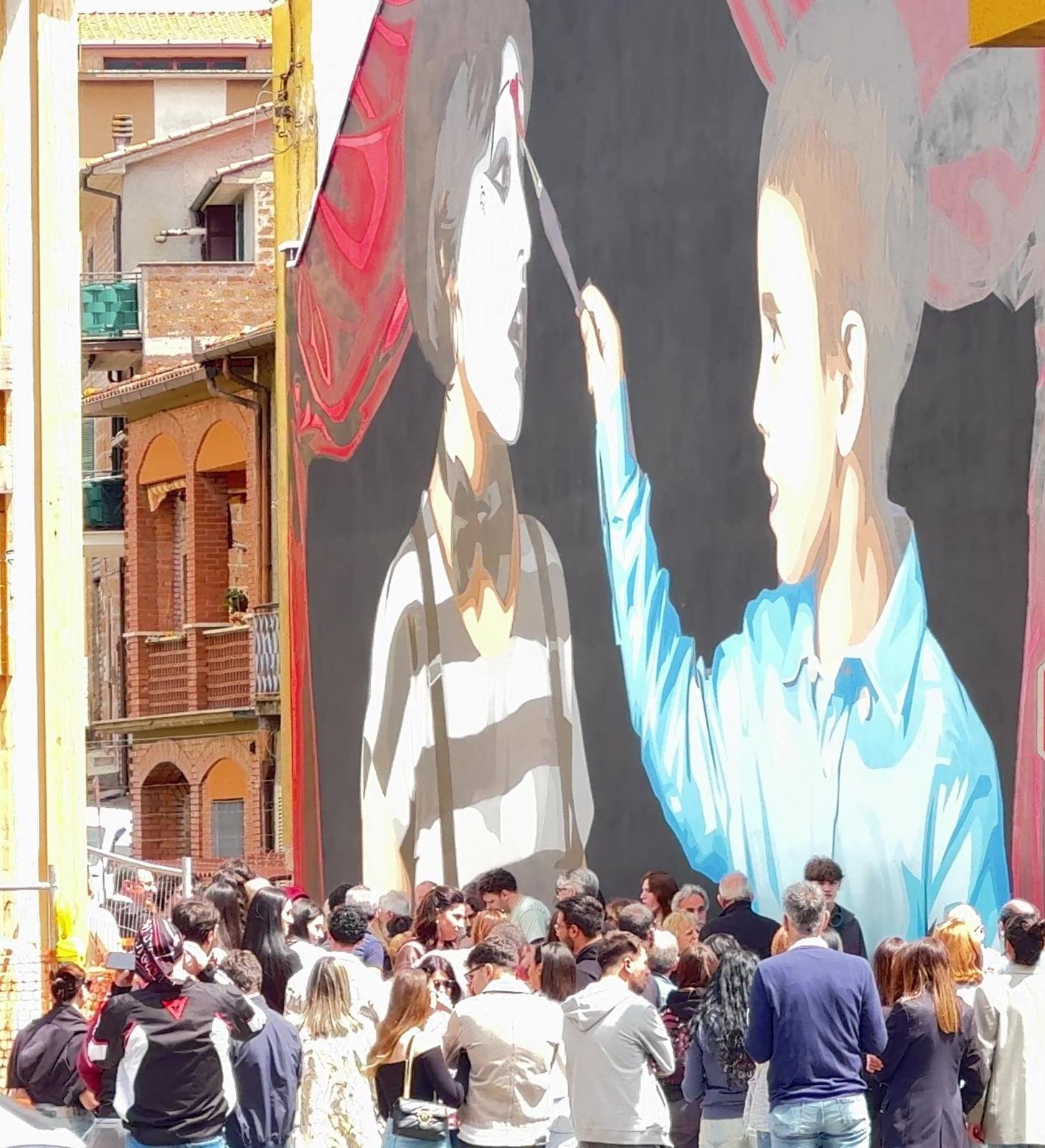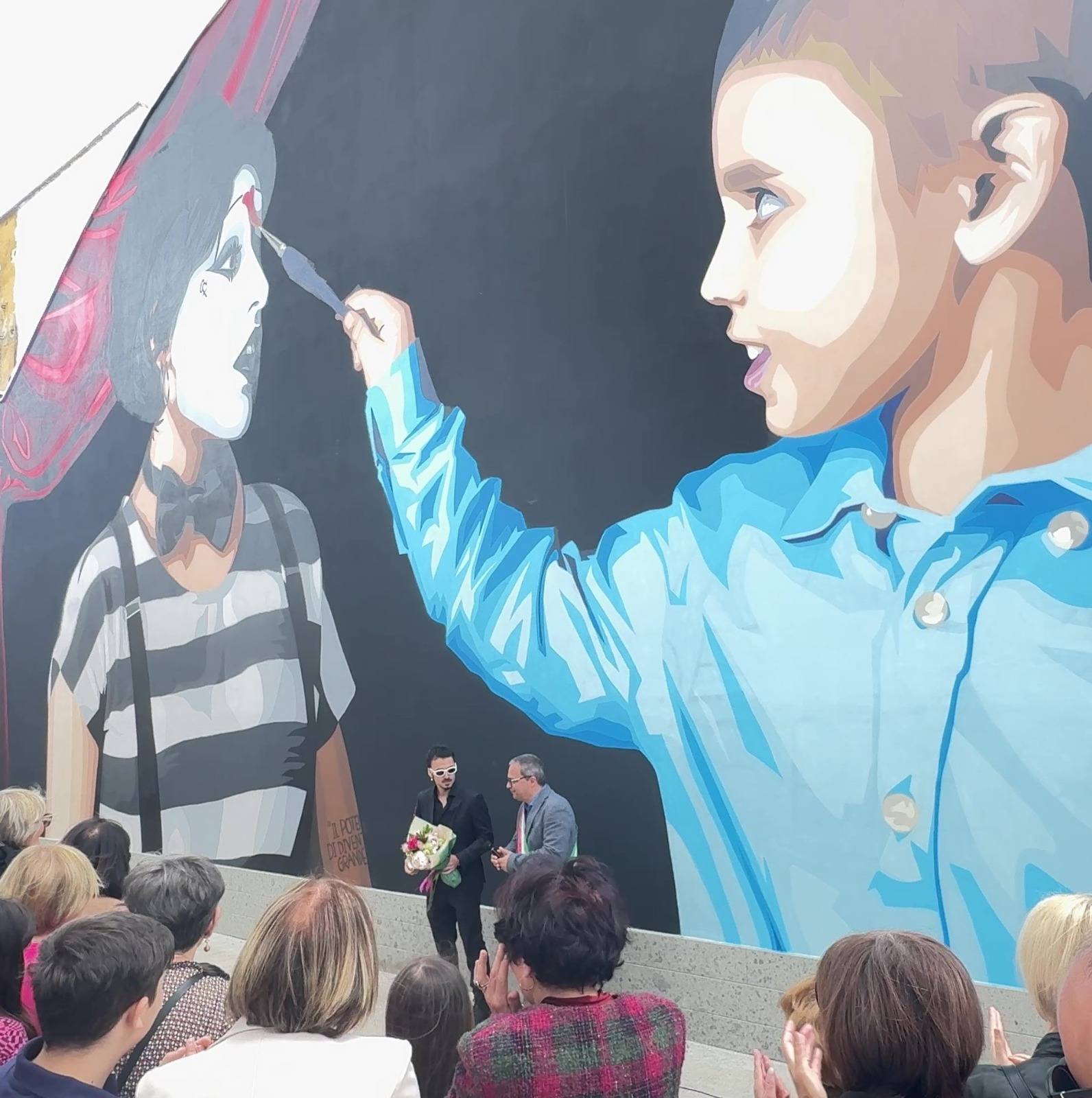 Il primo cittadino, ha concluso il suo discorso ricordando il vero protagonista dell’opera. “Chiudo con un pensiero al piccolo Daniel – ha specificato – il protagonista del nostro dipinto che da qualche giorno, purtroppo, ci ha lasciato. Non ho avuto la fortuna di conoscerlo, ma, soltanto quella di ascoltare la sua storia e di rimanere ammirato di fronte alla forza e al sorriso con i quali ha affrontato la tremenda malattia che lo affliggeva. Mi raccontano che, di fronte alla domanda: ‘Se fossi un supereroe, quale potere vorresti avere?’, lui abbia risposto: ‘Il potere di diventare grande’ (frase tatuata sul braccio del mimo nel dipinto). Purtroppo, caro Daniel, la vita non ti ha consentito di diventare un adulto, ma grande lo sei sempre stato. Sono onorato di avere la tua immagine a illuminare il nostro paese e convinto che l’esempio che ci hai lasciato, pur nel tempo così breve della tua vita, servirà a spiegare agli adulti la varietà di colori della vita”.