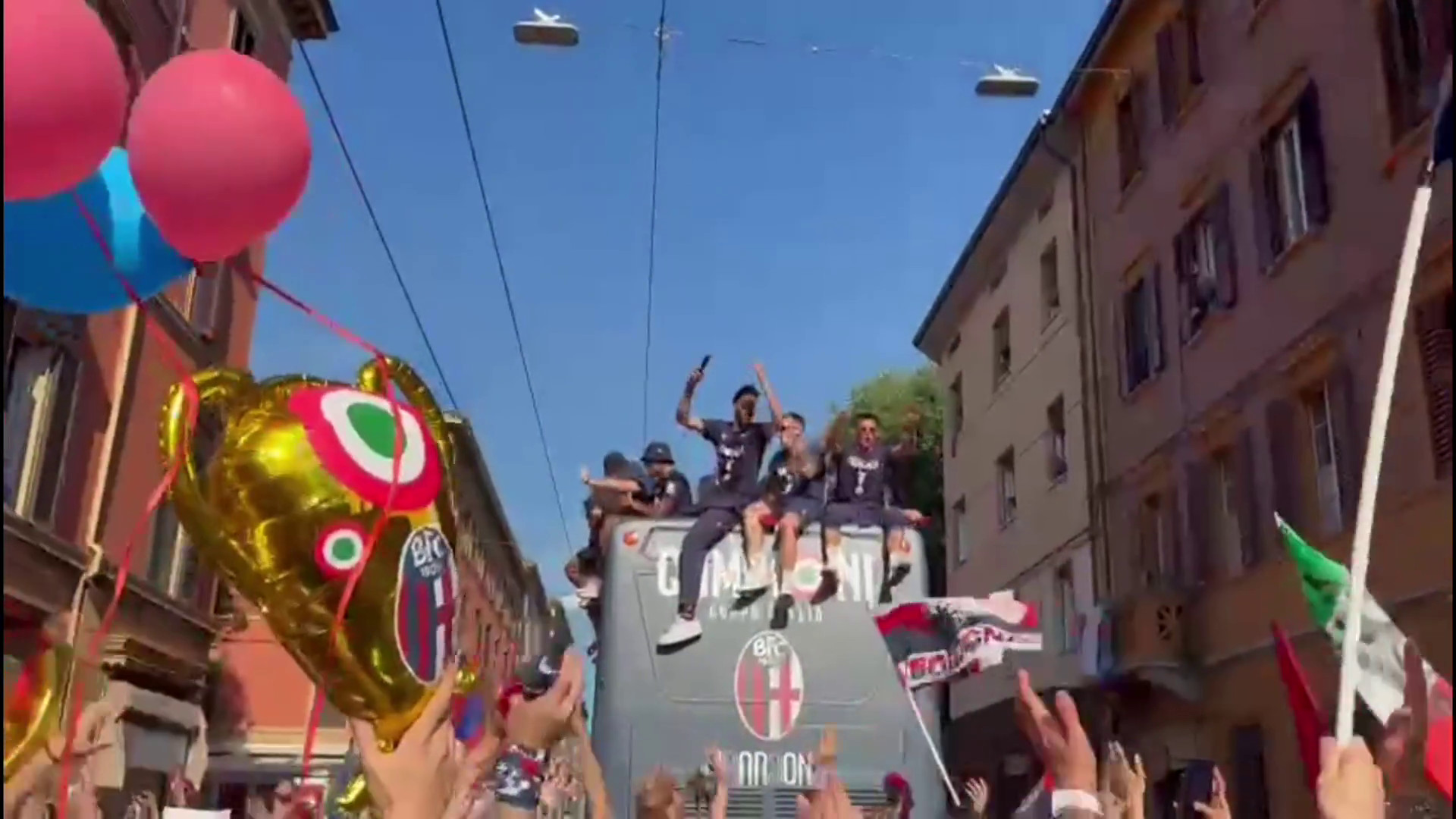 Coppa Italia sul bus scoperto, festa rossoblù per le strade di Bologna