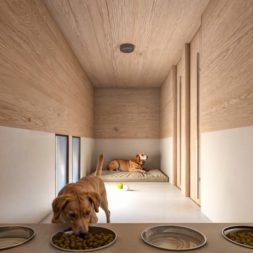 Ogni alloggio ha anche una zona esterna privata, in parte coperta, per garantire libertà e tranquillità al cane. Dieci le aree di sgambamento, suddivise per taglia e temperamento, così da permettere il gioco e la socializzazione in sicurezza.