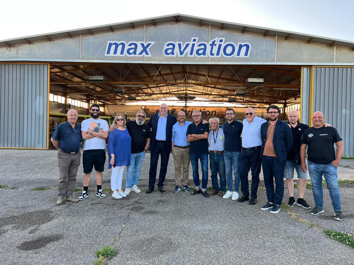 A maggio 2022, invece, la visita dell’attuale ministro della Difesa Guido Crosetto alla sede di Max Aviation, salutata così sui social: