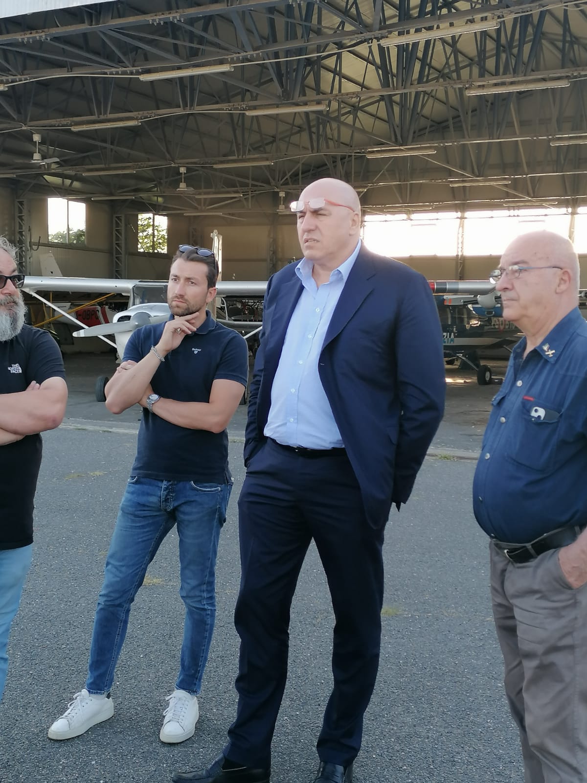 “Questa sera l’Aeroclub di Viterbo e la MaxAviation hanno accolto l’On. Guido Crosetto assieme all’On. Mauro Rotelli per una visita programmatica e conoscitiva dei lavori in corso nel sedime aeroportuale di Viterbo.”