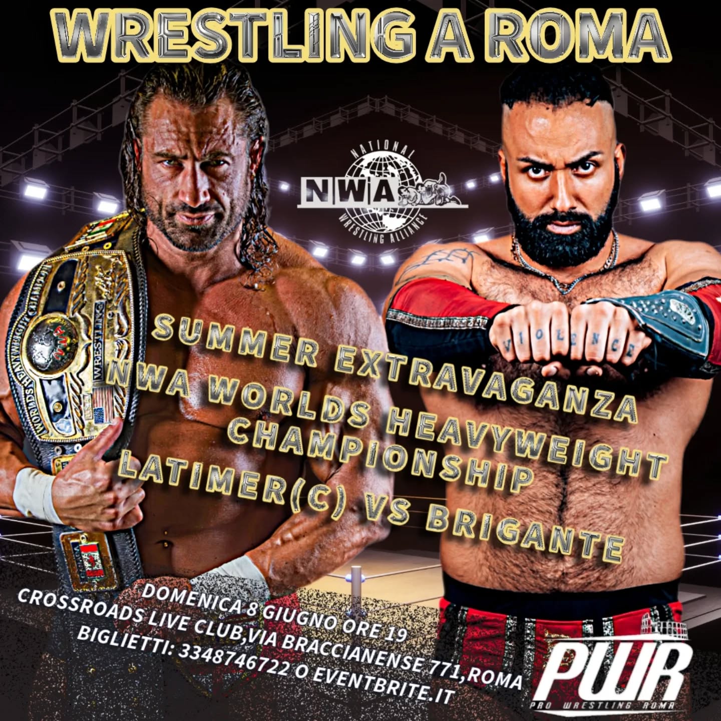 Latimer troverà ad attenderlo a Roma l’eroe di casa, il romano Karim Brigante, allenato dall’otto volte campione del mondo NWA “Handsome” Harley Race ed ultimo italiano dai tempi di Bruno Sammartino a vincere un titolo della National Wrestling Alliance, ossia il Missouri Heavyweight Championship.
