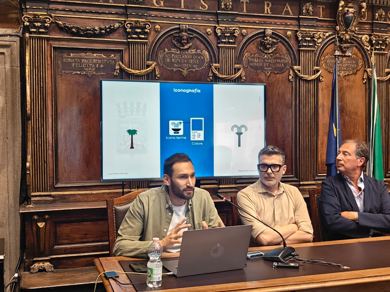 Cuore del progetto il logo, disegnato e realizzato da Daniele Muzzi per Majakovskij, agenzia di comunicazione e marketing di Simone Iocco, il “supervisore del progetto”. Il logo, come spiegato da Muzzi nasce raccogliendo l’eredità dal simbolo stesso di Viterbo. Una rivisitazione che stilizza e trasforma ogni dettaglio, come la palma tramutata in getto d’acqua termale, lo scudetto divenuto una doppia parentesi (graffa e quadrata) “contenitrice” e la corona, ora un restyling della loggia del Palazzo dei papi che richiama le fontane viterbesi. Un’opera del valore di 7500 euro, non pochi, ma sicuramente ben spesi per l’amministrazione che – citando una delle frasi tipiche della sindaca Chiara Frontini – vuole fare “All-in” nel settore termalistico viterbese.