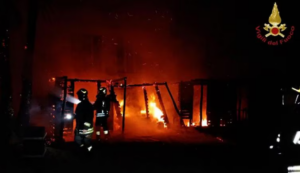 Il rogo, sviluppato per cause in corso di accertamento, ha provocato una grossa colonna di fumo visibile da centinaia di metri di distanza.