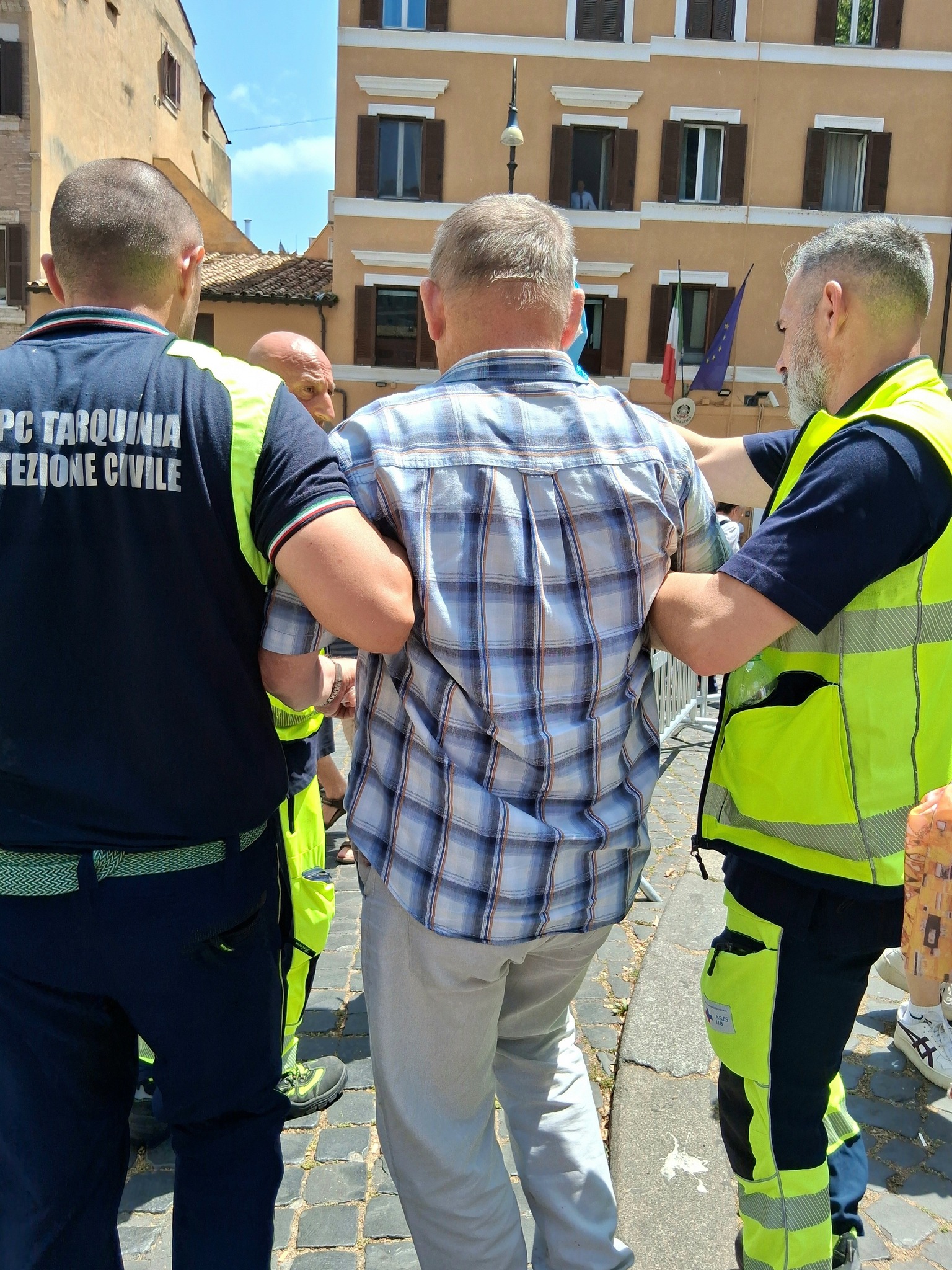 A intervenire in soccorso, rapidamente, proprio i volontari dell’AEOPC Tarquinia che hanno accompagnato atteso l’Ares 118 per accompagnare il paziente in una delle tende sanitarie presenti ai lati della piazza.