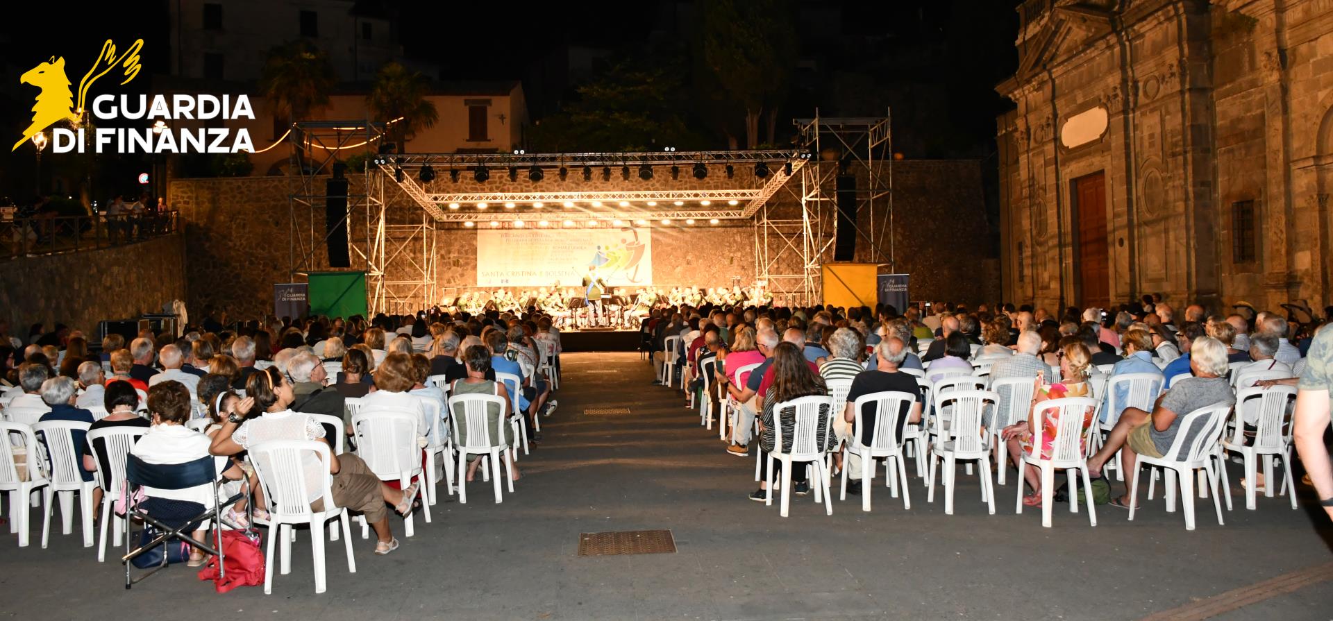 La serata è continuata nella splendida e suggestiva cornice della Basilica di Santa Cristina, con l’esibizione della Banda musicale della Guardia di Finanza diretta dal Maestro Vice Direttore Capitano Dario Di Coste.