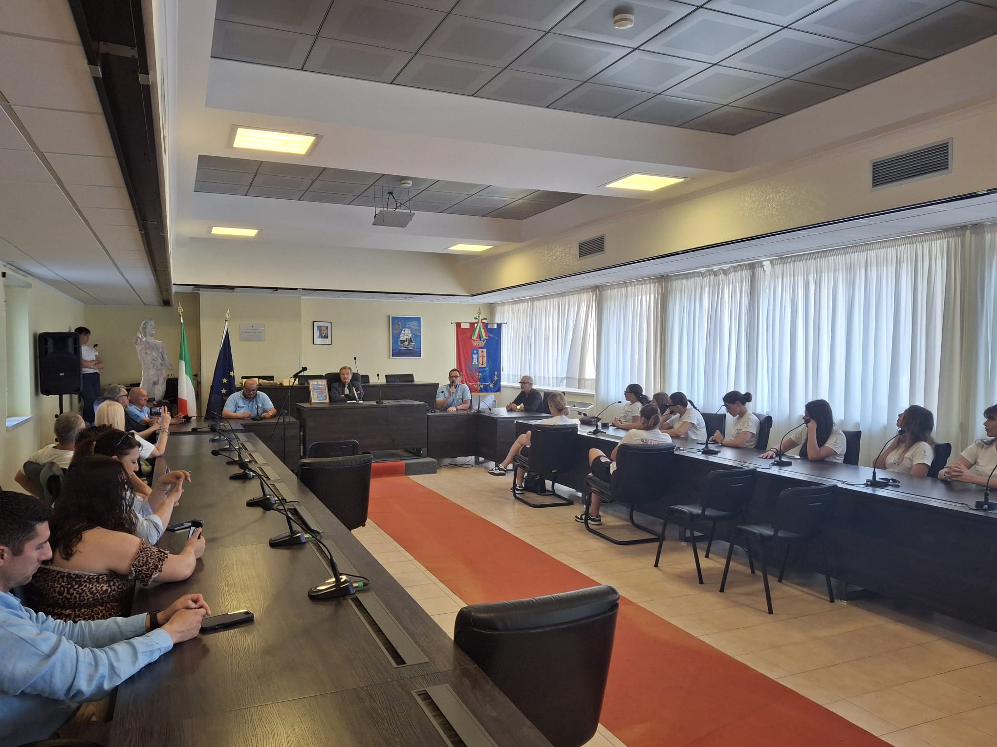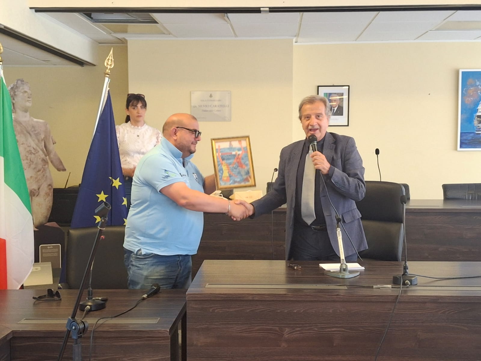 SANTA MARINELLA – Proseguono feste su feste. E tripudi. Ed omaggi istituzionali, doverosi. Per quel che ha scritto la Nautilus è storia, grande, enorme. Sicuramente di sport del comprensorio, soprattutto civitavecchiese. Tra le 10 regine dell’olimpo della massima serie di pallanuoto femminile, nemmeno una settimana fa la Nautilus stava coronando un sogno partito anni fa, quello di conquistare l’A1. Gara 3 a Viterbo col Sori, i rigori, il resto è storia. Civitavecchia torna a vantare una squadra di pallanuoto in massima serie, 13 anni dopo l’ultima volta. Un’impresa che va omaggiata, le gesta delle ragazze di Lisi, il progetto del presidente Braccini. Oggi società, club e squadra sono stati ricevuti e premiati, istituzionalmente, dall’Amministrazione di Santa Marinella, un’occasione che il club ha colto anche per presentare ufficialmente Mario Bianchi che diventa direttore sportivo e Lorenzo Pietrini che assume le redini d’addetto stampa. Il Sindaco Tidei ha consegnato targa rappresentativa prima del più classico brindisi, Sindaco che dopo le congratulazioni ha tenuto a manifestare tutta la sua massima apertura e sostegno, facendo sentire vicinanza alle sorti di un club che, tra le mille vicissitudini e senza Palagalli, ha saputo conquistarsi l’olimpo. Tutte da sole. Gigantesche, le ragazze di Lisi. “Una promozione merito delle atlete e dei dirigenti Nautilus, che senza mai risparmiarsi, abbattersi e credendoci fino in fondo hanno raggiunto questo il traguardo ambito. Oggi atlete e società entrano a pieno titolo nella storia sportiva del territorio portando per la prima volta nella massima categoria la pallanuoto femminile. A tutte loro va la nostra stima e l’augurio di proseguire questa meravigliosa avventura con soddisfazioni” – spiega il Sindaco, Pietro Tidei, che ne approfitta per omaggiare una delle atlete di Lisi, Alessia Ballanti, proprio santamarinellese: “Saluto a nome della città di Santa Marinella la nostra Alessia, una giovane atleta che si impegna ogni giorno, dividendosi tra studio e allenamenti, e offrendo un importante contributo per il successo della squadra. Colgo anche l’occasione per fare i complimenti ad un altro concittadino pallanuotista in serie A1 maschile, il giovane e promettente Stefano Ballarini. Complimenti a tutti”.