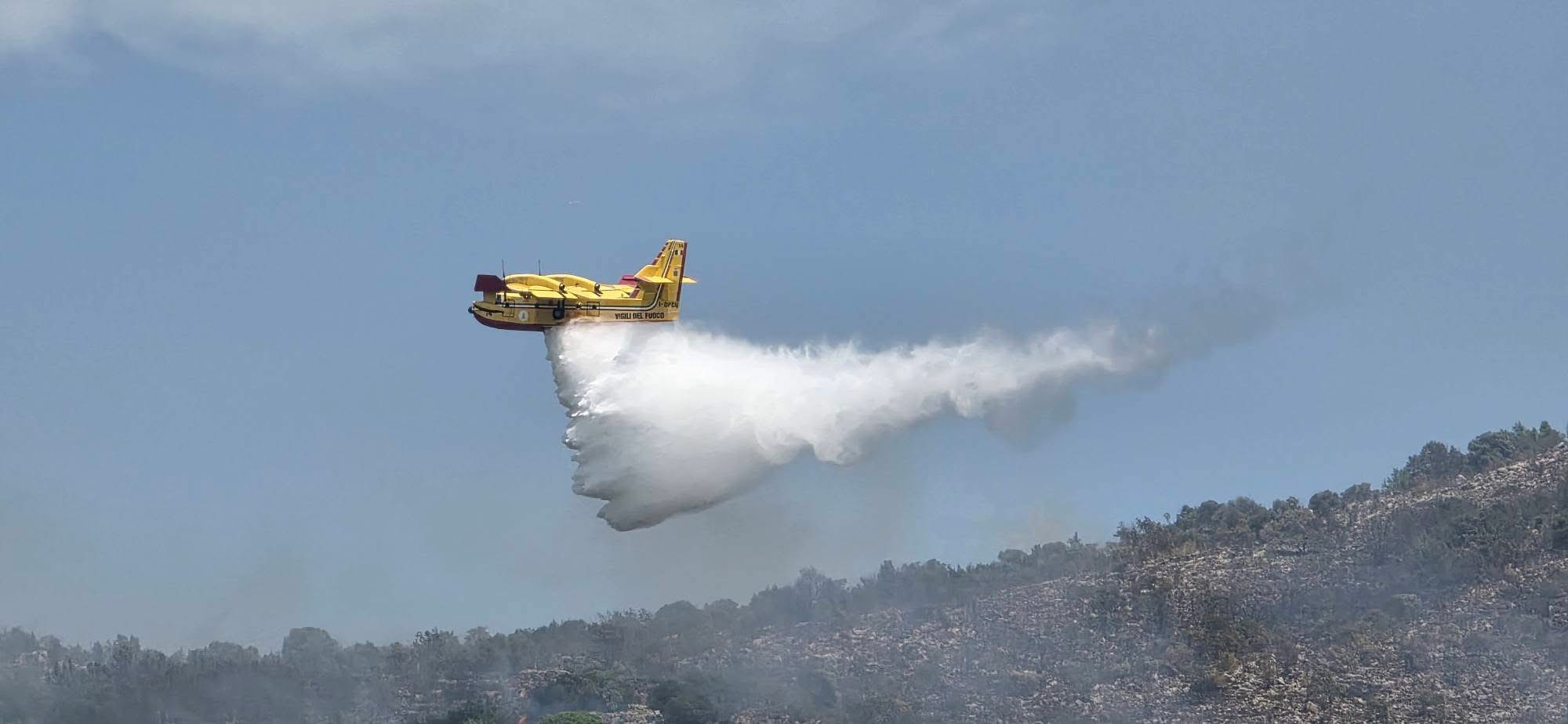 Una densa colonna di fumo è visibile a chilometri di distanza. Le abitazioni più vicine si trovano più a valle del fronte delle fiamme ma grazie all’intervento dei Canadair ed al lancio di sostanze antincendio sono state messe in sicurezza.