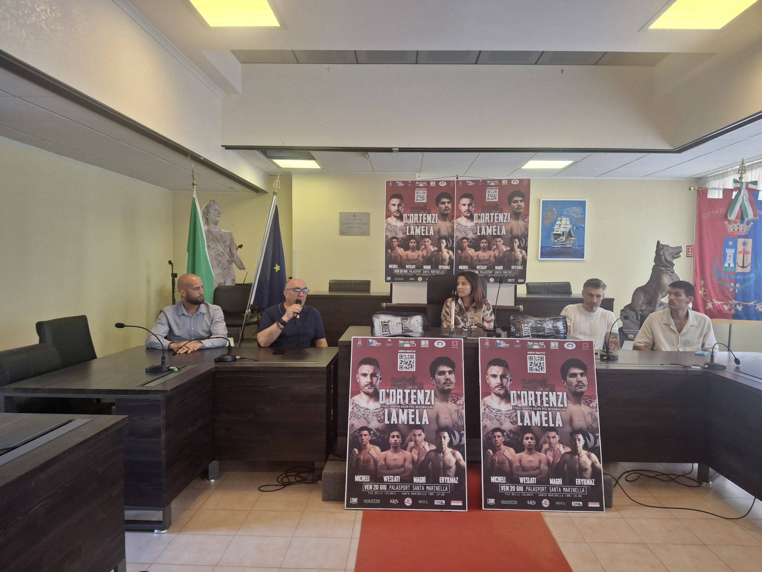 SANTA MARINELLA – Fiocca un altro appuntamento d’assoluto prestigio a Santa Marinella con cui decolla la stagione estiva del nuovo Pala De Angelis, il nuovo Palazzetto dello Sport, gioiellino dell’impiantistica sportiva dell’Amministrazione comunale Tidei, riqualificato e rilanciato, presentato ed inaugurato a pubblico e società sportive a fine maggio. Un appuntamento nazionale e internazionale. Già perchè torna sul ring l’eterno Luca D’Ortenzi, per giocarsi la cintura EBU silver dei medio massimi. Una sfida che per settimane ha preparato su Ragomadov ma che, col belga costretto al forfait, adesso descriverà i suoi sogni passare dall’esperto spagnolo Carlos Alberto Lamela. 32 anni, sarà l’ultimo step tra Luca e quel titolo continentale in questa specialità che insegne da anni, ormai, per coronare percorso e carriera fin qui narranti tre titoli internazionali e quella laurea in campione d’Italia pesi massimi 2019. Sarà evento d’altissimo rango: ore 23, accorreranno appassionati da tutta Italia. Già, ma soprattutto le gesta di Luca D’Ortenzi e Carlos Lamela saranno riprese e trasmesse in diretta dalla tv di stato, la Rai. Un appuntamento che allerta e gasa tutta la Federazione, così come mezza Guidonia, città natale del campione azzurro. Una serata di grande sport organizzata dalla Santa Marinella Ring del maestro Maurizio Sebastiani, per la quale rappresentava figurava in conferenza il figlio Alessandro accompagnato da tutti i suoi atleti, e chiaramente dalla Promo Boxe Italia di Mario Loreni, il quale torna in prima linea con un altro evento sulla Perla del Tirreno come nel 2023. A sostegno, chiaramente ed in prima linea, il Comune di Santa Marinella. Proprio a via Cicerone 25 è stato appena presentato l’evento all’Aula Consiliare. A far gli onori di casa l’assessore allo Sport, Marina Ferullo: “Grande orgoglio. Grandi campioni. Grande spettacolo per la città, una città che torna predisposta allo sport internazionale. Trionfino lealtà e sportività, come ci insegna la Boxe. Speriamo che sia soltanto il secondo di qualsiasi altro grande evento che ospiteremo con grande orgoglio”. Quindi parola al massimo volto della Promo Boxe Italia, Loreni: “Domani di scena Luca, un campione che a ottenuto secondo me poco in base a quanto vale, a livello internazionale. Domani sera avrà la possibilità di riscattarsi. L’avversario sarà di livello, spagnolo, siamo sicuri che chi dal vivo chi da casa tramite la TV si divertirà. Un ringraziamento all’amministrazione che anche quest’anno ci ha accolto. È già un arrivederci all’anno prossimo!”. Quindi D’Ortenzi: “Evento in diretta RAI, organizzato alla grande, in un palcoscenico come Santa Marinella. Sono gli eventi per cui noi pugili professionisti siamo fieri di far parte di questo movimento. Sono pronto, sia fisicamente che mentalmente”. Un’Aula Consiliare invasa da ragazzi e appassionati dall’ASD Santa Marinella Ring rappresentata da Alessandro Sebastiani, che esprime tutta la sua emozione: “Da 42 anni operiamo nel settore, non sono pochi, frutto di impegno di impegno, costanza e passione. Una passione riconosciuta anche dal Coni. Ringrazio tutti, dall’Amministrazione alla Federazione, sarà una grande possibilità per i nostri giovani santamarinellesi per appassionarsi ancora di più”. Dunque il locale che abbraccia il Nazionale. Fermento e conto alla rovescia. Prima della presentazione il classico, fascinoso e rituale appuntamento con la missione del peso. Presente anche il Supervisor EBU, Enza Jacoponi. Se l’appuntamento clou è previsto per le 23, la serata partirà dalle 19, decollando con sfide di gran bel livello per avvicinare appassionati alle varie discipline: sul ring torna anche il capitolino Micheli, poi Weslati, quindi Magrì ed Eryilmaz. Insomma, per tutti i gusti. Antipasti raffinatissimi prima della grande portata, quella continentale, quella delle 23: Luca D’Ortenzi contro Carlos Lamela, già partito il conto alla rovescia.