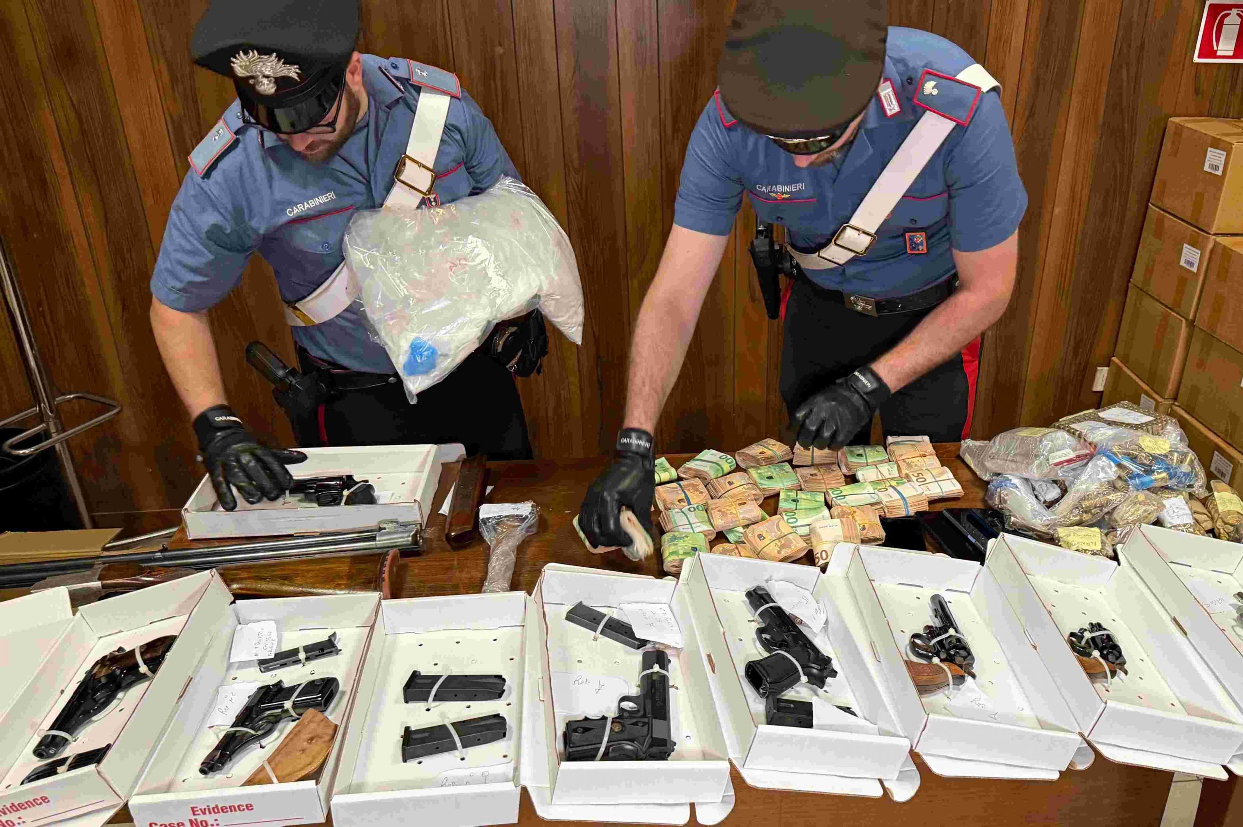Le indagini hanno poi condotto i Carabinieri all’abitazione dell’anziana assistita dalla donna, dove sono emersi elementi ancora più inquietanti: un fucile, otto pistole (sei delle quali risultate rubate), 1.704 cartucce di vario calibro, quasi 800 grammi di cocaina e 140mila euro in contanti. Tutto il materiale è stato sequestrato e le armi saranno analizzate dai RIS di Roma per verificare un eventuale collegamento con episodi criminali recenti.