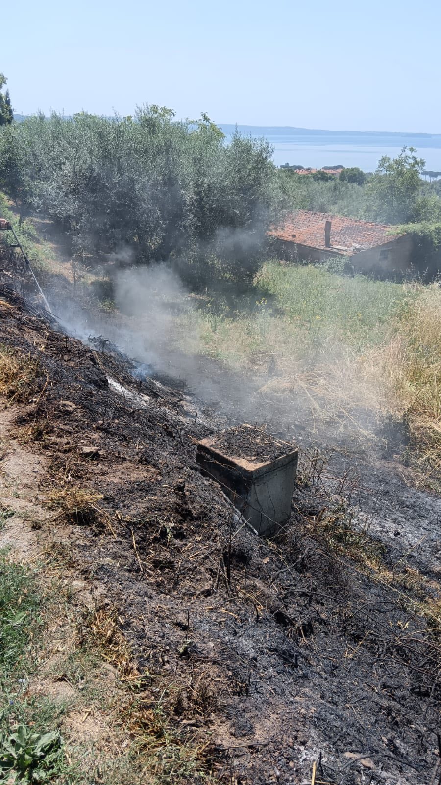 Bolsena – Incendio a bordo strada in località Citerno, intervento rapido della Protezione civile (FOTO)
