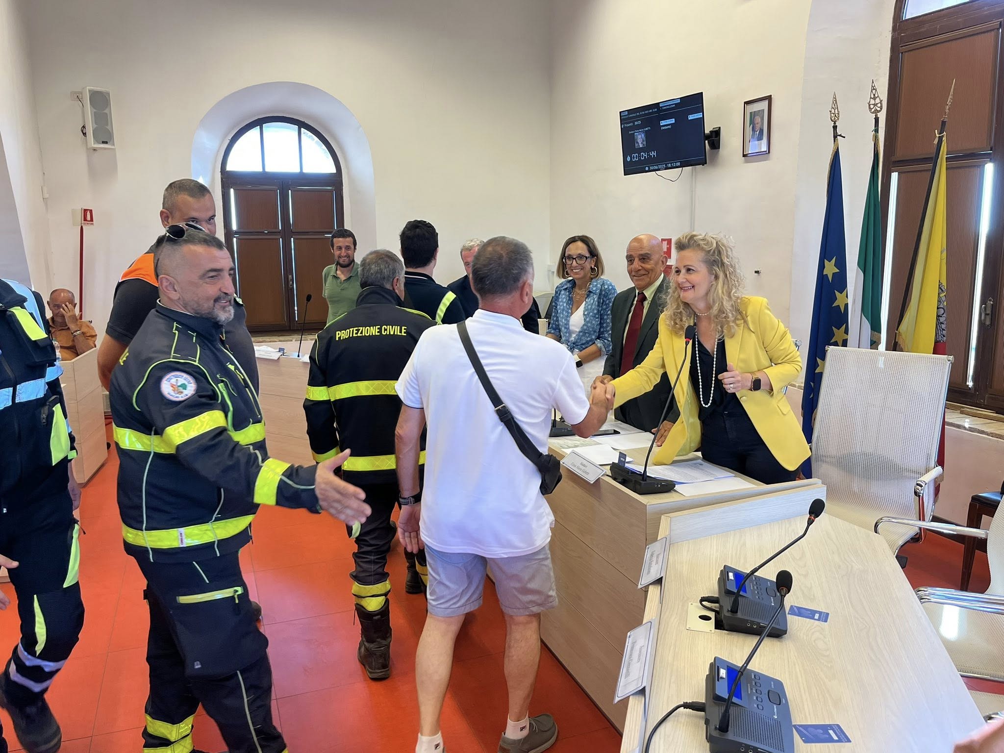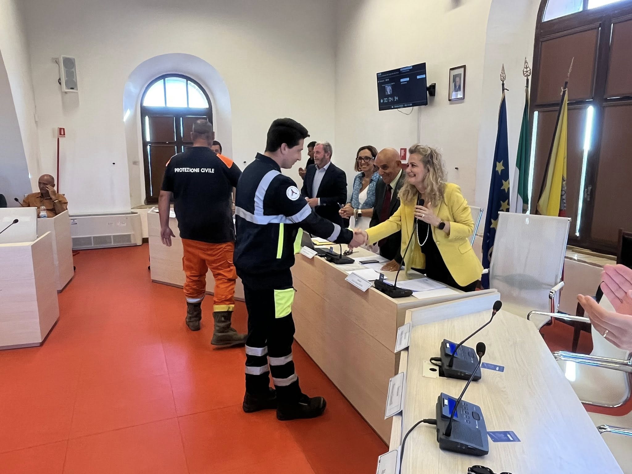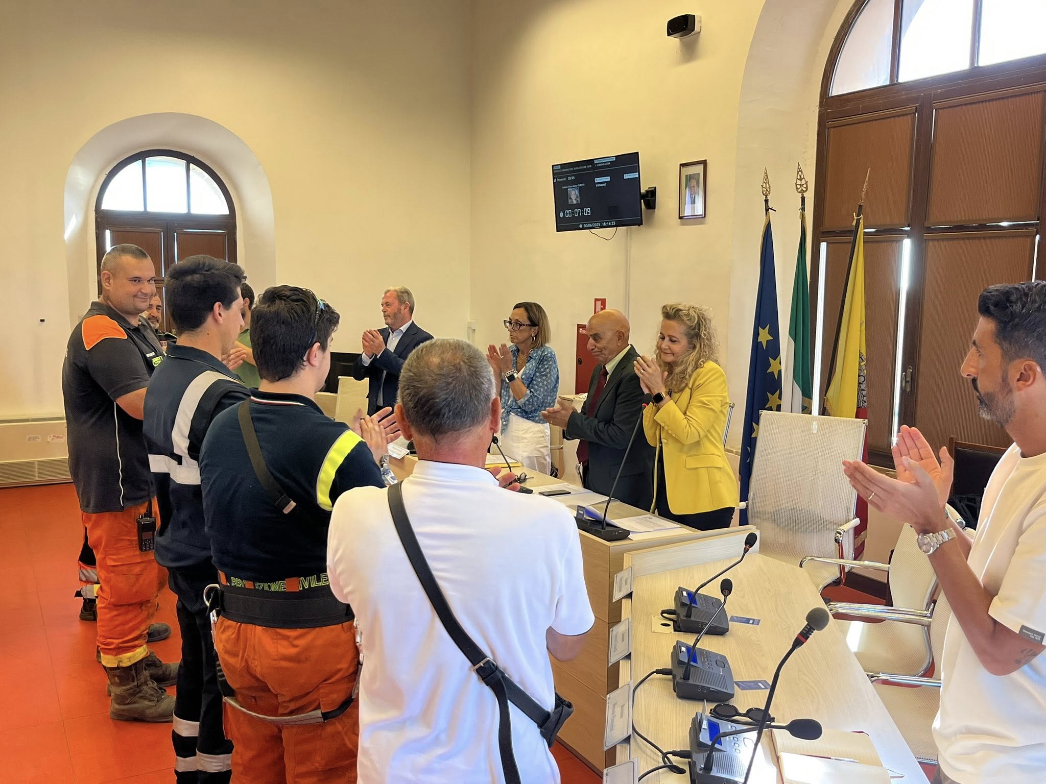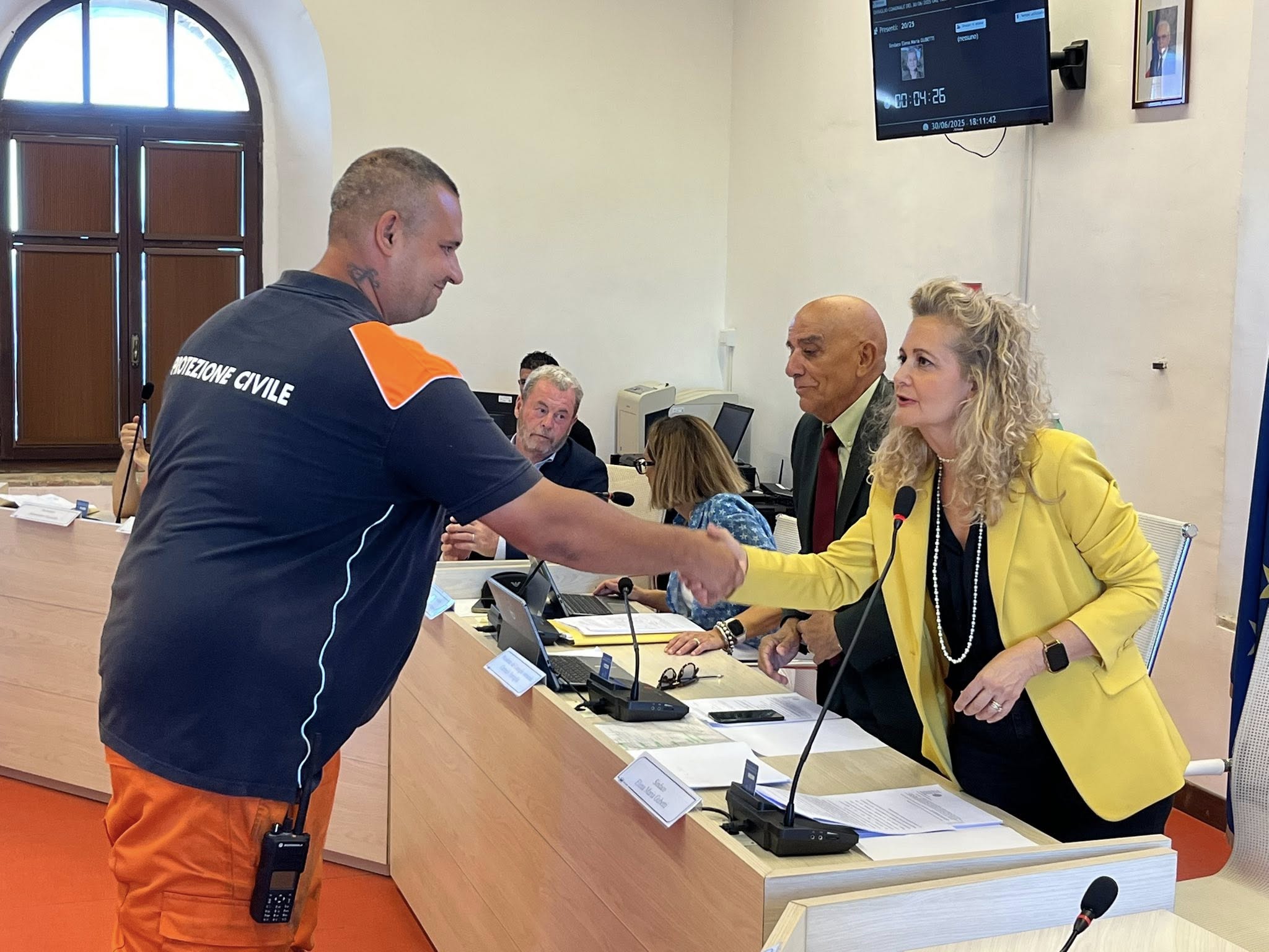 CERVETERI — Un sentito momento di gratitudine ha aperto ieri, 30 giugno, il Consiglio comunale di Cerveteri. La sindaca Elena Gubetti ha voluto rendere omaggio pubblicamente ai volontari del Gruppo Comunale di Protezione Civile, protagonisti di un intervento decisivo durante il gravissimo incendio che nei giorni scorsi ha minacciato il centro storico della città.