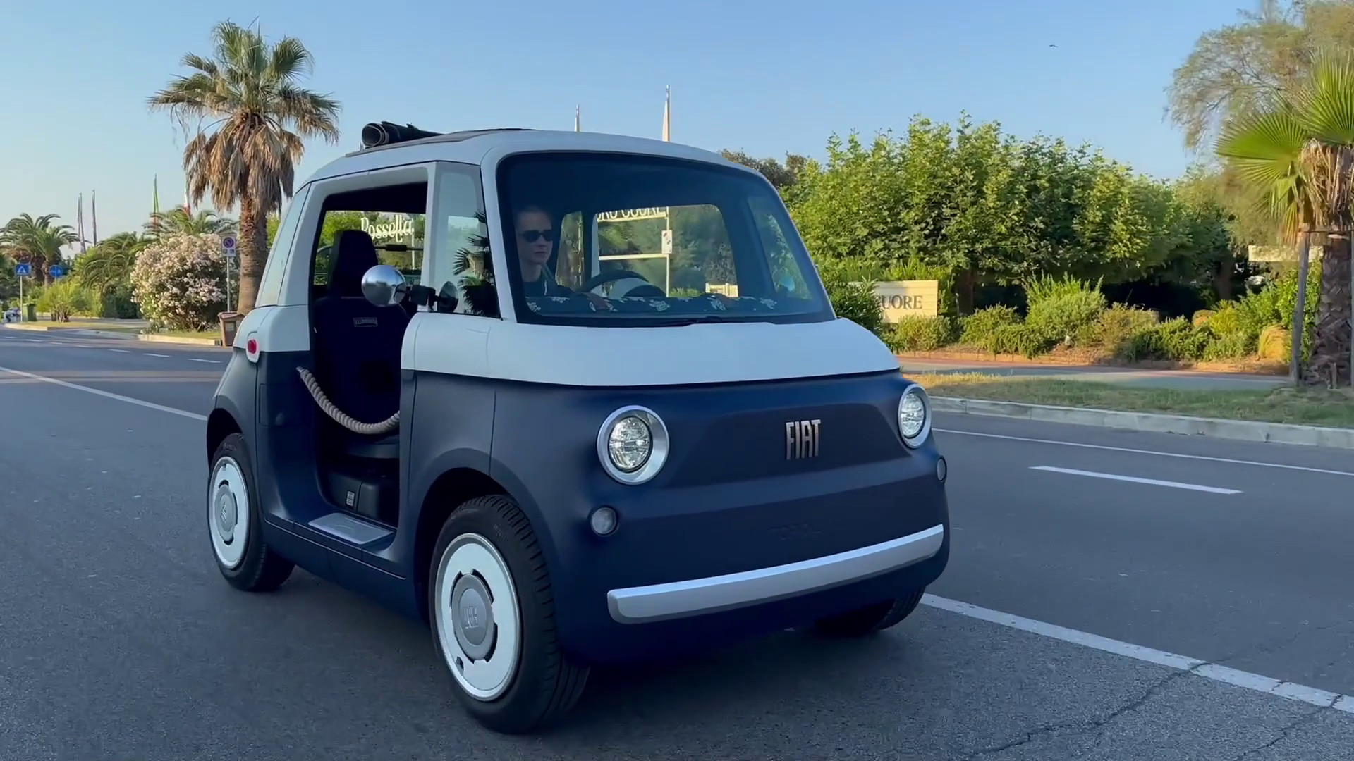 ROMA (ITALPRESS) – Dalla collaborazione tra Fiat e Vilebrequin è nata la nuova Topolino Vilebrequin Collector’s Edition, microcar ispirata all’estate, di cui saranno prodotti soltanto 200 esemplari rifiniti artigianalmente. Lunga due metri e mezzo e larga meno di un metro e mezzo, la Topolino ha più o meno le dimensioni della mitica 600, ma è elettrica. All’esterno la livrea in bianco e blu marine richiama i temi degli ombrelloni a righe con la capote che si arrotola facilmente. Sul retro un portapacchi può contenere una cesta per il picnic. Sotto il volante, azionando un tasto, si apre uno sportellino all’esterno, lato guida, che dà accesso a una doccetta. Non ci sono sportelli e al loro posto una corda, in stile marinaro, delimita l’accesso. Non sono previsti i tappetini che sono sostituiti da dettagli in teak ispirati al mondo nautico. Con i suoi 45 chilometri di andatura massima non si rischiano contravvenzioni per eccesso di velocità e i 75 km di autonomia sono più che sufficienti per andare in giro fra un lido e l’altro.