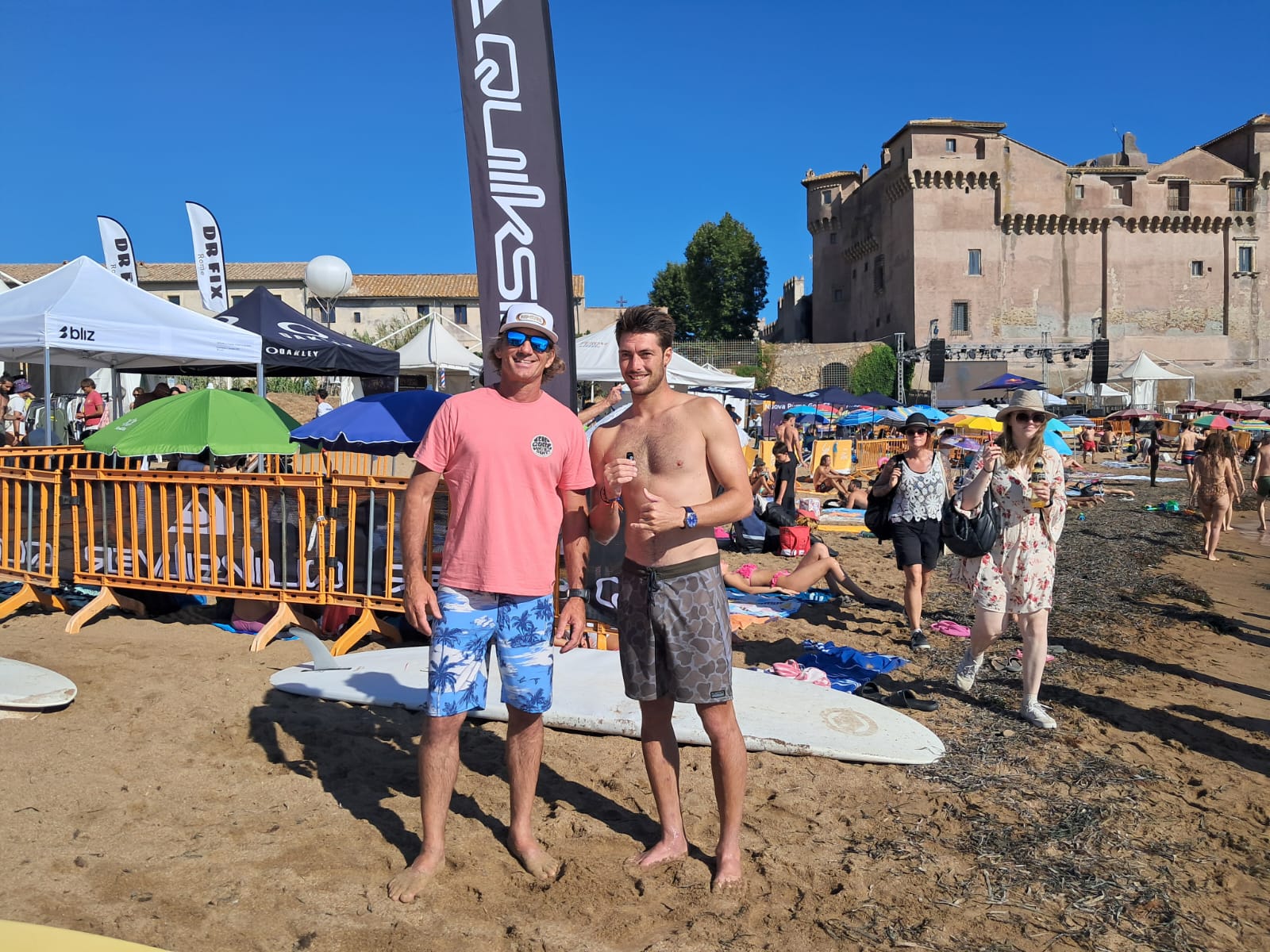 EVENTI Un evento reso possibile dalle istituzioni Regione e Comune di Santa Marinella, così come la Federazione stessa. Partner dell’evento tanti media capisaldi dei loro rispettivi campi, da Dimensione Suono Roma al Corriere dello Sport. Dalla Federazione un’istituzione come Alessandro Marciano, surfista professionista e sostanzialmente patron della kermesse, ma non solo: anche Tommaso (campione europeo 2022) e Cecilia Pampinella, quindi Nasiri e presidente Ponziani; poi attività su ogni fronte, quindi Quiksilver & Roxy Surf School come scuola gratuita e quella serie di workshop in cui testare gli appassionati e avvicinare gli interessari al mondo del surf e delle onde. Cinema all’aperto con i migliori video surf, area bambini con tappeti elastici (spazio per tutte le generazioni). Una vera e propria tre giorni mozzafiato sulle spiagge sotto la sempre suggestiva location del Castello di Santa Severa.