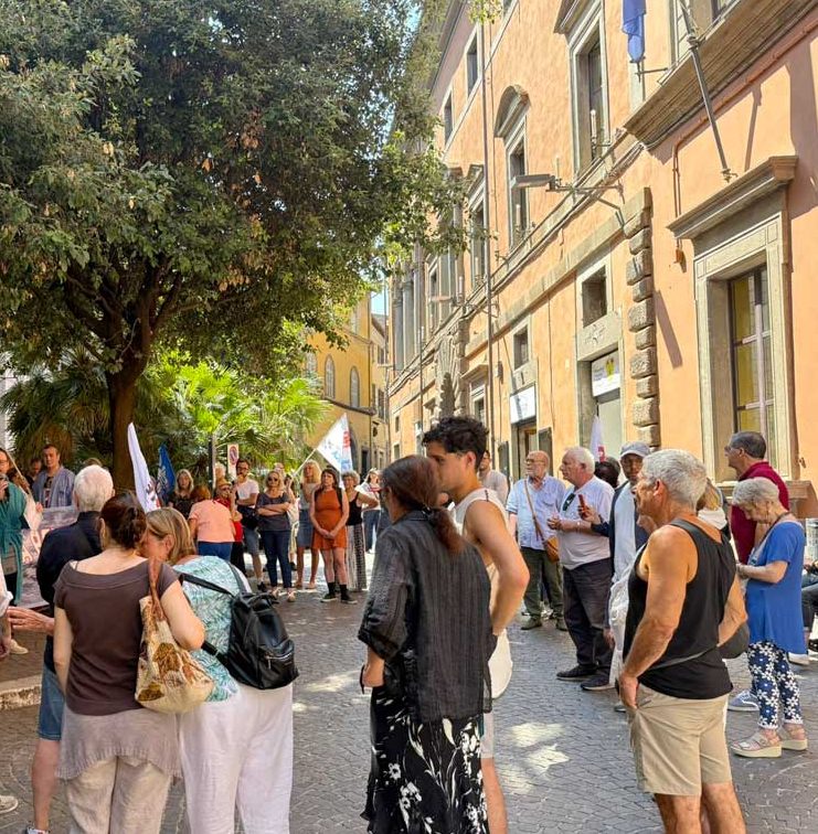 Con loro anche i membri del comitato “Uniti per l’acqua pubblica” di Fabrica di Roma che, agitando bottiglie di plastica, hanno gridato lo slogan “Non possiamo usare l’acqua neanche per lavarci i denti” riferendosi al problema dell’alta quantità di arsenico nelle acque e alle contaminazioni da enterococchi, che ultimamente hanno afflitto il servizio idrico della zona.
