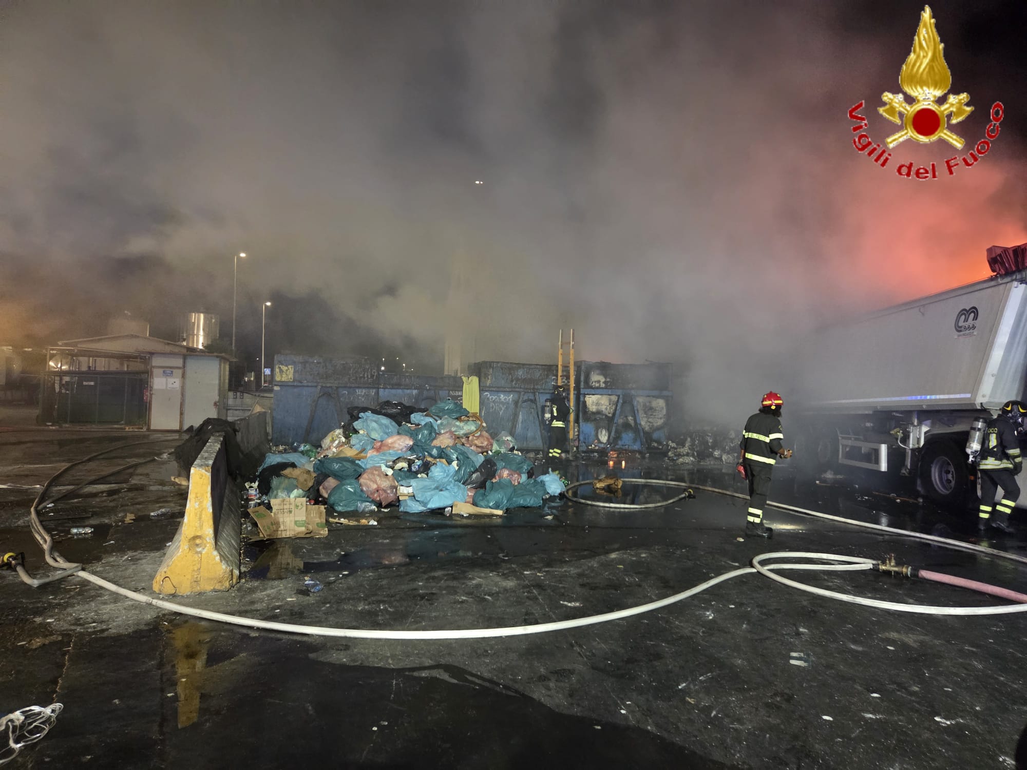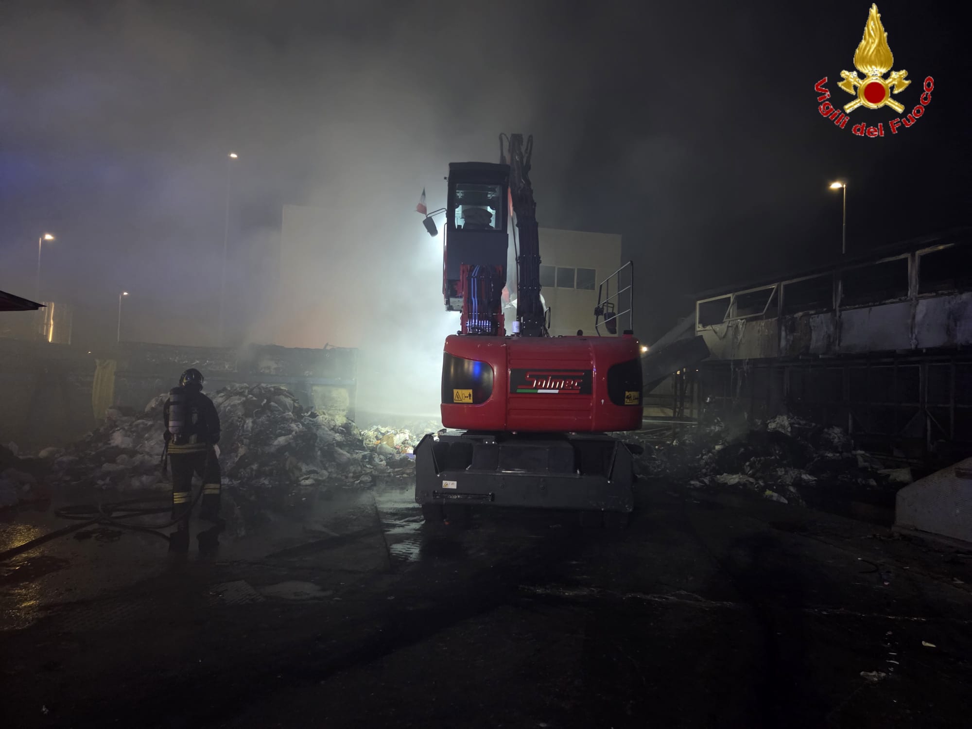 I Vigili del fuoco hanno avviato immediatamente le operazioni di spegnimento, lavorando con precisione per smassare i rifiuti pressati, così da velocizzare la bonifica e impedire la ripresa delle fiamme. Determinante è stato anche il supporto dell’autobotte AB17, che ha garantito un apporto continuo di acqua.