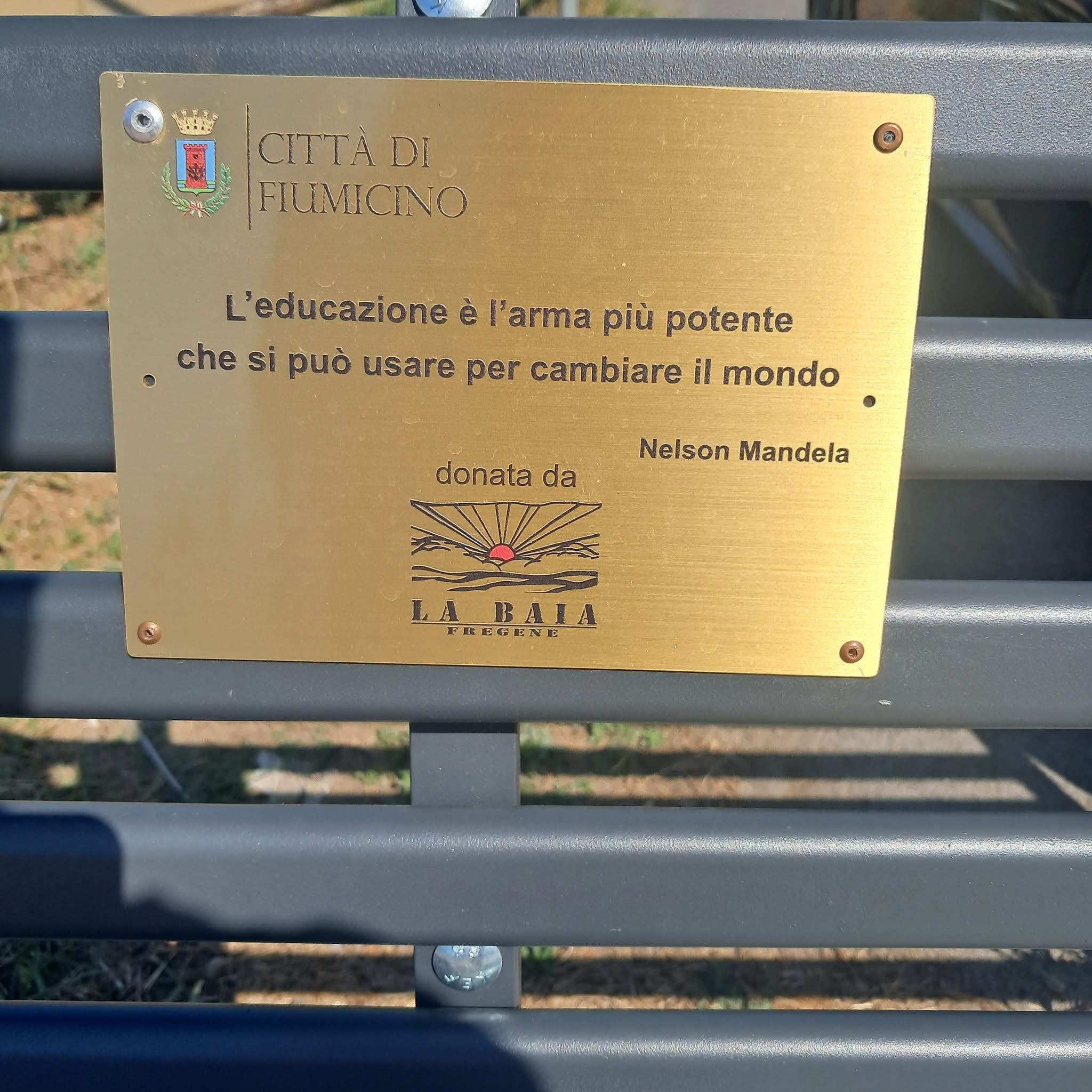 FIUMICINO – Da “L’educazione e’ l’arma più potente che si puo’ usare per cambiare il mondo” di Nelson Mandela a “Non contare i giorni, fai in modo che i giorni contino” di Mohamed Ali’ , fino a pensieri di Winston Churchill, Lao Tzu e Mahatma Gandhi. Sono le frasi motivazionali che compaiono, a Fregene, sulle nuove 5 “Panchine della Legalità” legate al progetto civico “Legalmente marciando” che si è svolto a Fregene il 7 Aprile scorso, alla presenza di Don Antonio Coluccia, il prete anti spaccio,istituzioni civili, militari e le scuole del territorio.