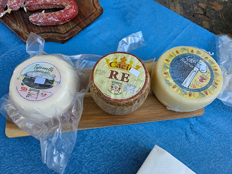 Protagonisti assoluti della serata i vini: l’Aleatico rosato “Ramatico” di Antonella Pacchiarotti (Grotte di Castro) e la Cannaiola “Martino IV” di Debora Castelli (Marta). Due cantine simbolo della Tuscia, che hanno accompagnato una ricca selezione di sapori del territorio: salumi laziali, pecorino Mosto dei Papi, Cacio Re e Pecorino Lago di Bolsena, serviti con marmellate di Cannaiola, fichi, cioccolata e vino di Italisal.