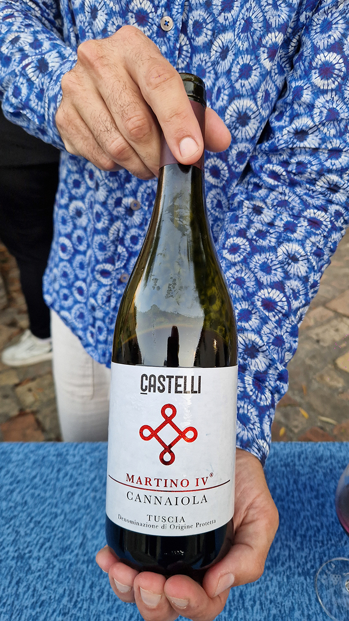 Molto apprezzato anche il racconto legato alle due etichette, entrambe custodi di storie affascinanti: la Cannaiola Martino IV è dedicata al pontefice che, durante il suo breve pontificato (1281-1285), scelse Montefiascone come residenza e amava recarsi a Marta per gustare le anguille pescate sul lago, sempre accompagnate da questo vino. L’Aleatico di Gradoli, invece, affonda le sue radici in una leggenda popolare: si narra che un demone, rintanato in una grotta, venne scacciato da un leone (raffigurato anche nello stemma del Comune). Dal loro scontro sarebbe nata la prima vite di Aleatico, ancora oggi coltivata.