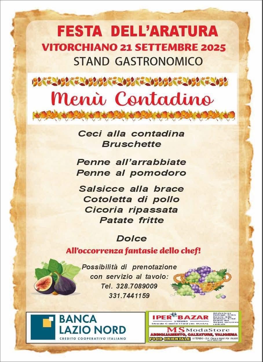 VITORCHIANO – Tradizioni contadine protagoniste a Vitorchiano con la seconda edizione della Festa dell’Aratura in programma domenica 21 settembre 2025 in Via della Stazione. L’evento, organizzato dall’associazione Carnevale e Cultura in collaborazione con il Comune di Vitorchiano, unisce la celebrazione delle radici agricole del territorio a un sano divertimento per grandi e piccoli.