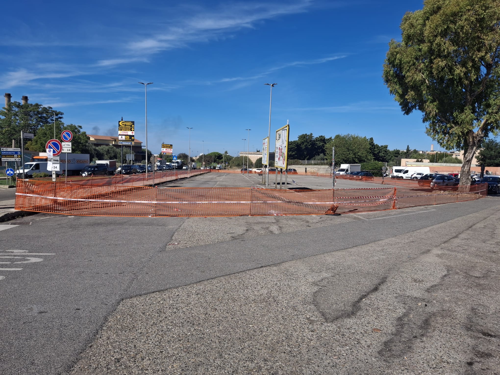 Contestualmente, qualche metro più giù e direzione rotonda del Tribunale, dove chiaramente la circolazione risentiva dei lavori descritti in precedenza considerando chi proveniente dalla zona industriale, l’area parcheggio antistante Tribunale stesso su via Pecorelli è stata definitivamente recintata. Iniziati i lavori per l’installazione di strisce blu che si concluderanno a fine ottobre: contingentata e recintata già la prima grossa parte (circa due terzi) dell’area parcheggio.