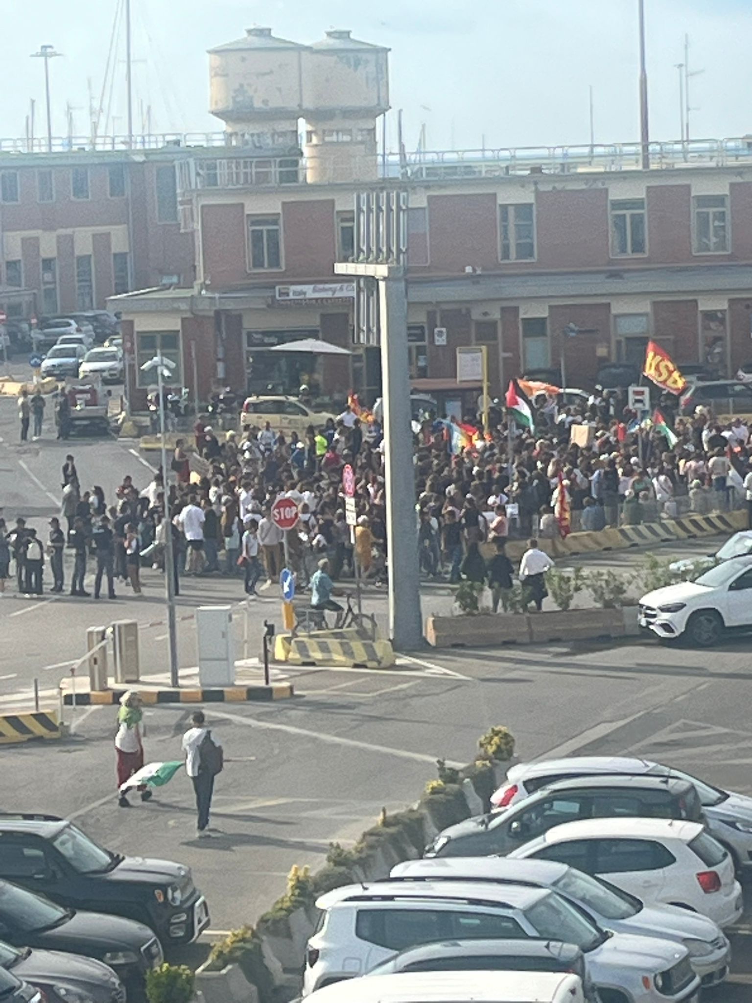 CIVITAVECCHIA – Circa duecento persone si sono radunate oggi a Molo Vespucci, sede dell’Autorità di Sistema Portuale del Mar Tirreno Centro Settentrionale, per un presidio a sostegno del popolo palestinese.
