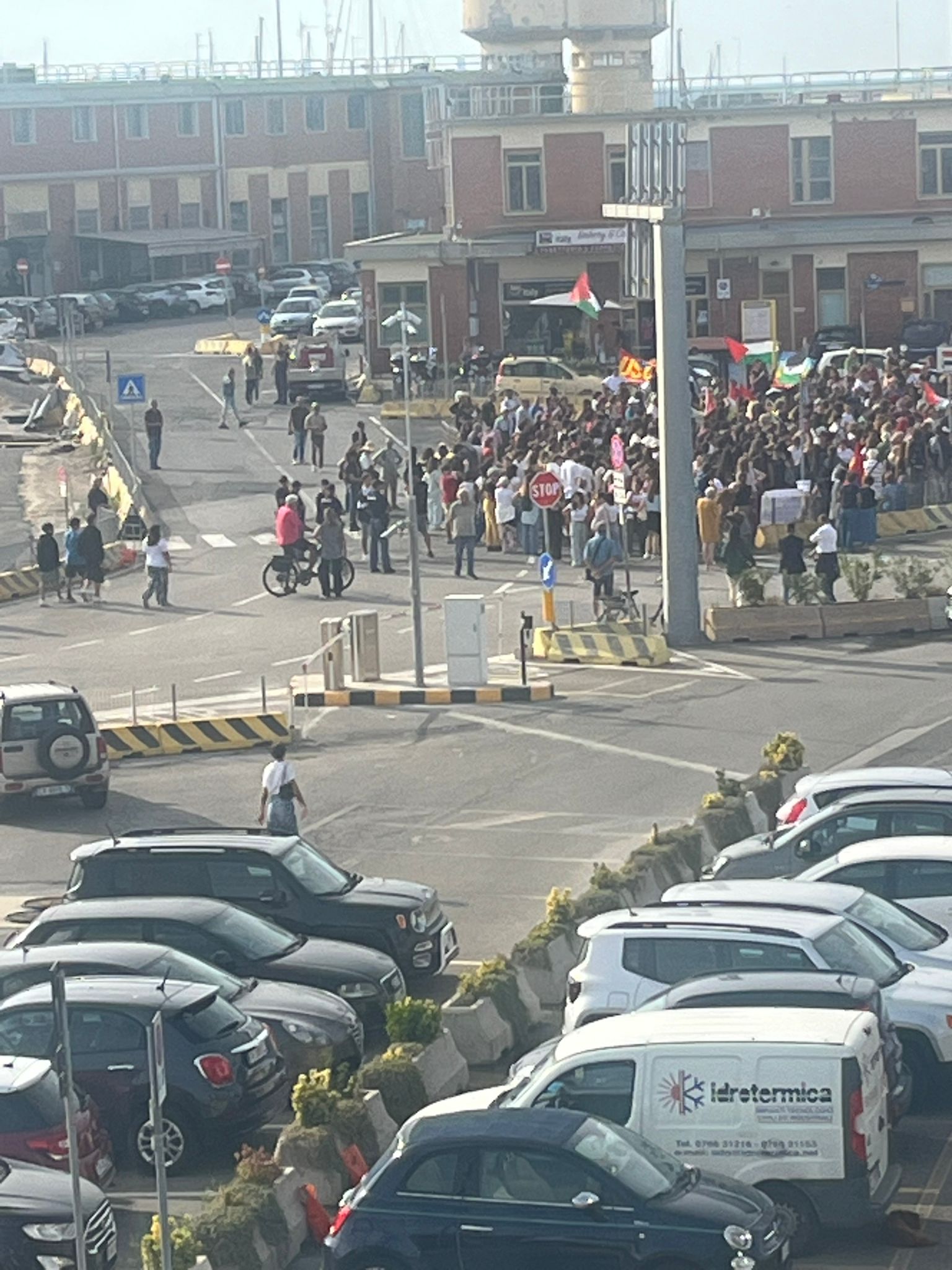 I manifestanti hanno esposto bandiere palestinesi e scandito slogan come “Free, free Palestine”, in linea con le numerose iniziative che in questi giorni stanno interessando diverse città italiane ed europee.