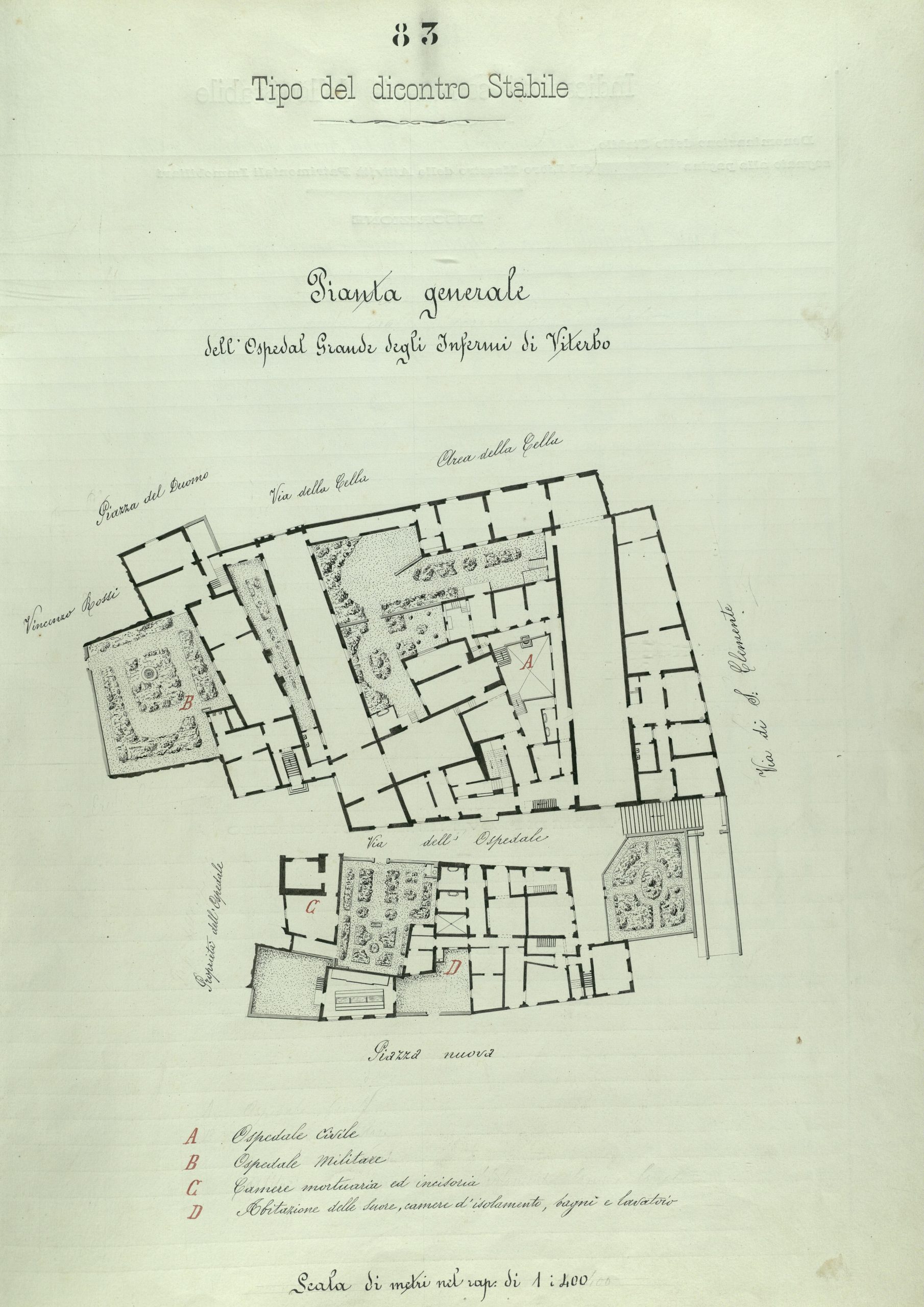 Pianta dell’Ospedale Grande degli Infermi di Viterbo, tratta dal Registro dei possedimenti dell’Ospedale civile della città.