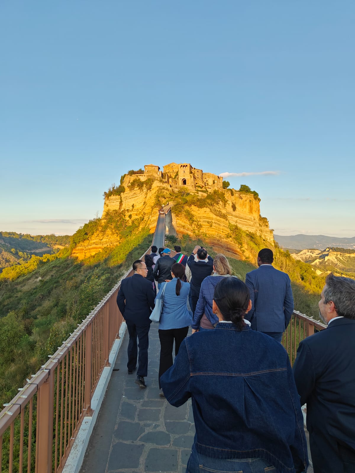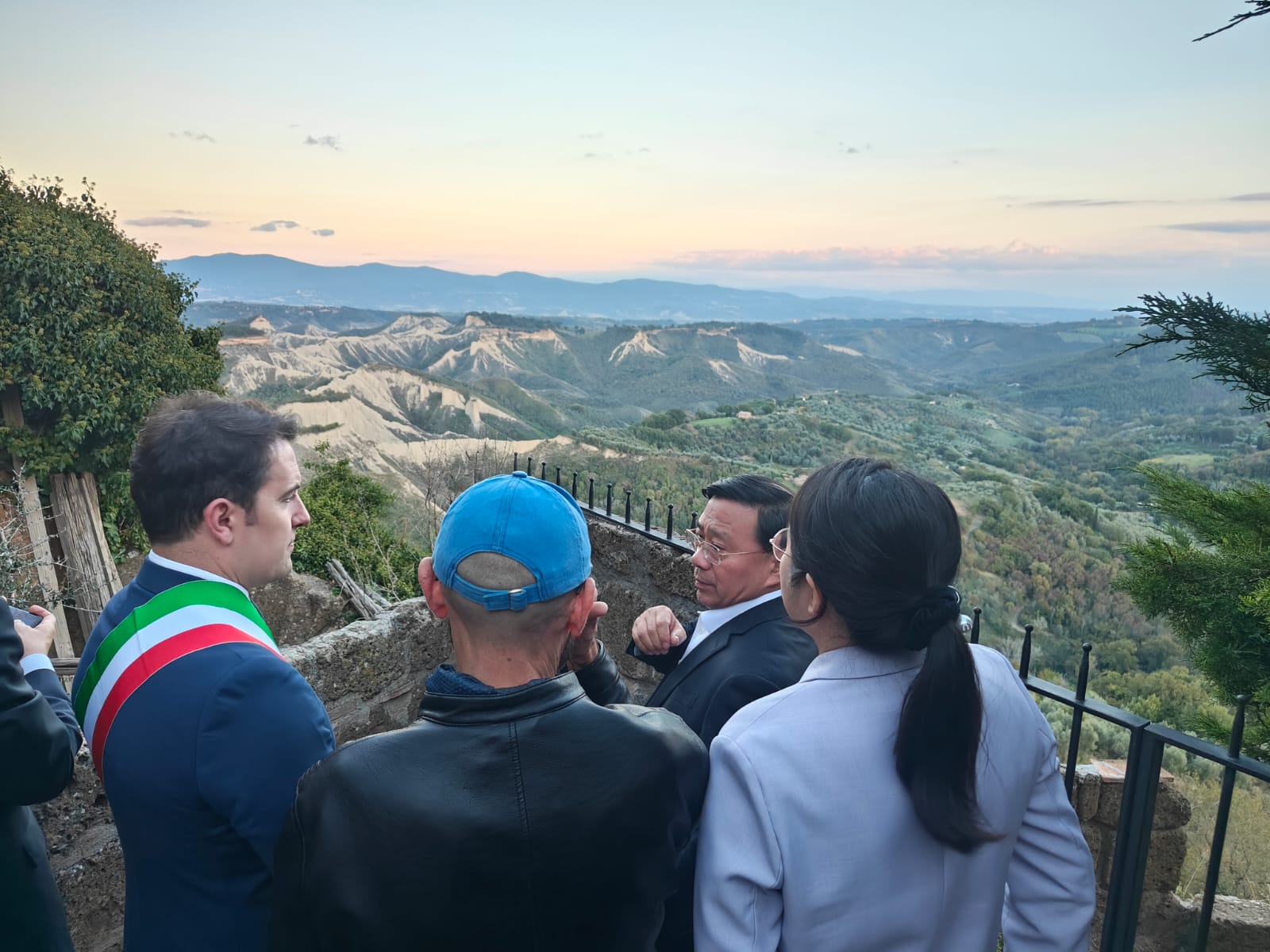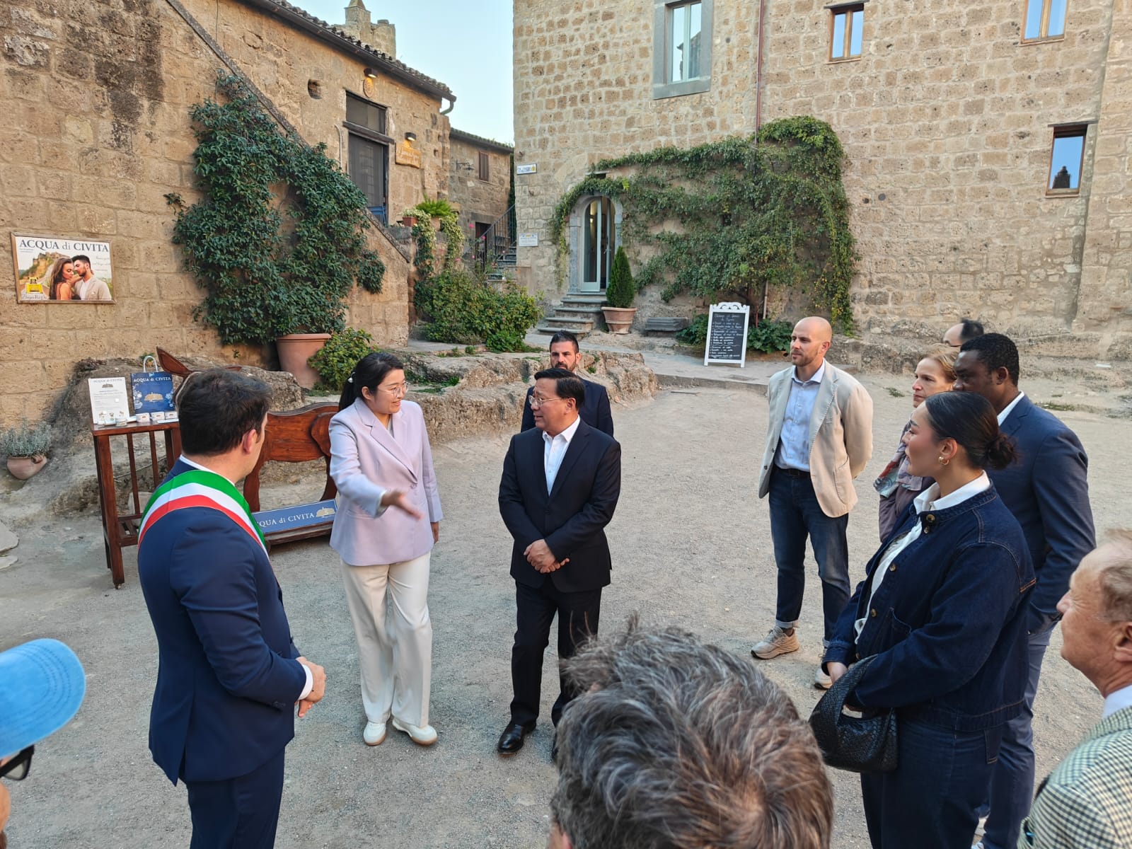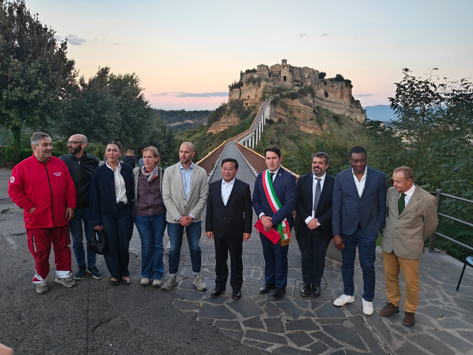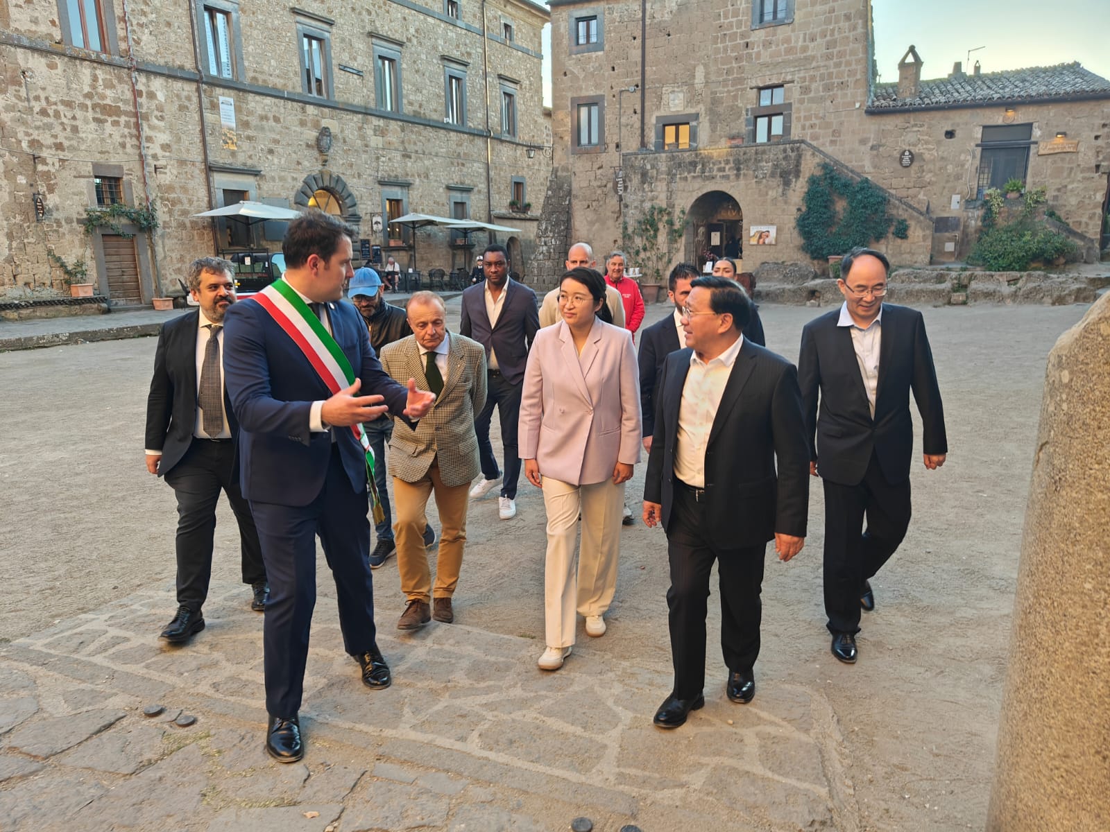 L’incontro ha offerto anche uno spunto di dialogo su sviluppo rurale, sostenibilità e turismo agricolo — temi centrali per il Ministero cinese degli Affari Rurali e profondamente legati all’identità della Tuscia, da sempre territorio agricolo e autenticamente rurale. Il sindaco Luca Profili ha evidenziato l’importanza dei rapporti con la Cina, ricordando che “circa 180mila turisti giungono in Italia dalla Cina ogni anno. Ben 30mila fanno tappa a Civita di Bagnoregio. Un segnale importante per il turismo locale, anche perché i turisti cinesi, come numero, sono secondi solo agli stessi italiani qui a Civita.”