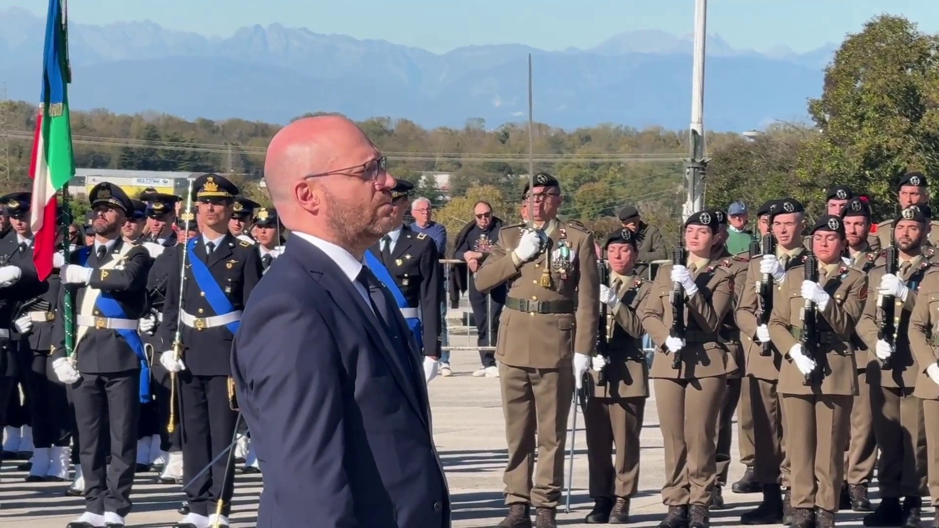 GORIZIA (ITALPRESS) – Il presidente della Camera dei deputati, Lorenzo Fontana, ha partecipato oggi alla cerimonia della resa degli onori ai caduti al Sacrario militare di Redipuglia (Go) in occasione delle celebrazioni del 4 novembre, Giorno dell’unità nazionale e Giornata delle Forze armate. Dopo la resa degli onori, il Presidente Fontana ha percorso la via eroica fino al sacello del Duca d’Aosta, dove è stata deposta una corona d’alloro ed è stato osservato un minuto di silenzio. Raggiungendo l’area delle cerimonie, Fontana ha quindi salutato le scolaresche presenti, rivolgendo loro l’invito a “studiare la storia”, e ha stretto la mano a Paola Del Din, 102 anni, medaglia d’oro al valore militare e portatrice della medaglia d’oro del fratello Renato, la quale ha poi letto la motivazione della medaglia d’oro concessa al Milite Ignoto.