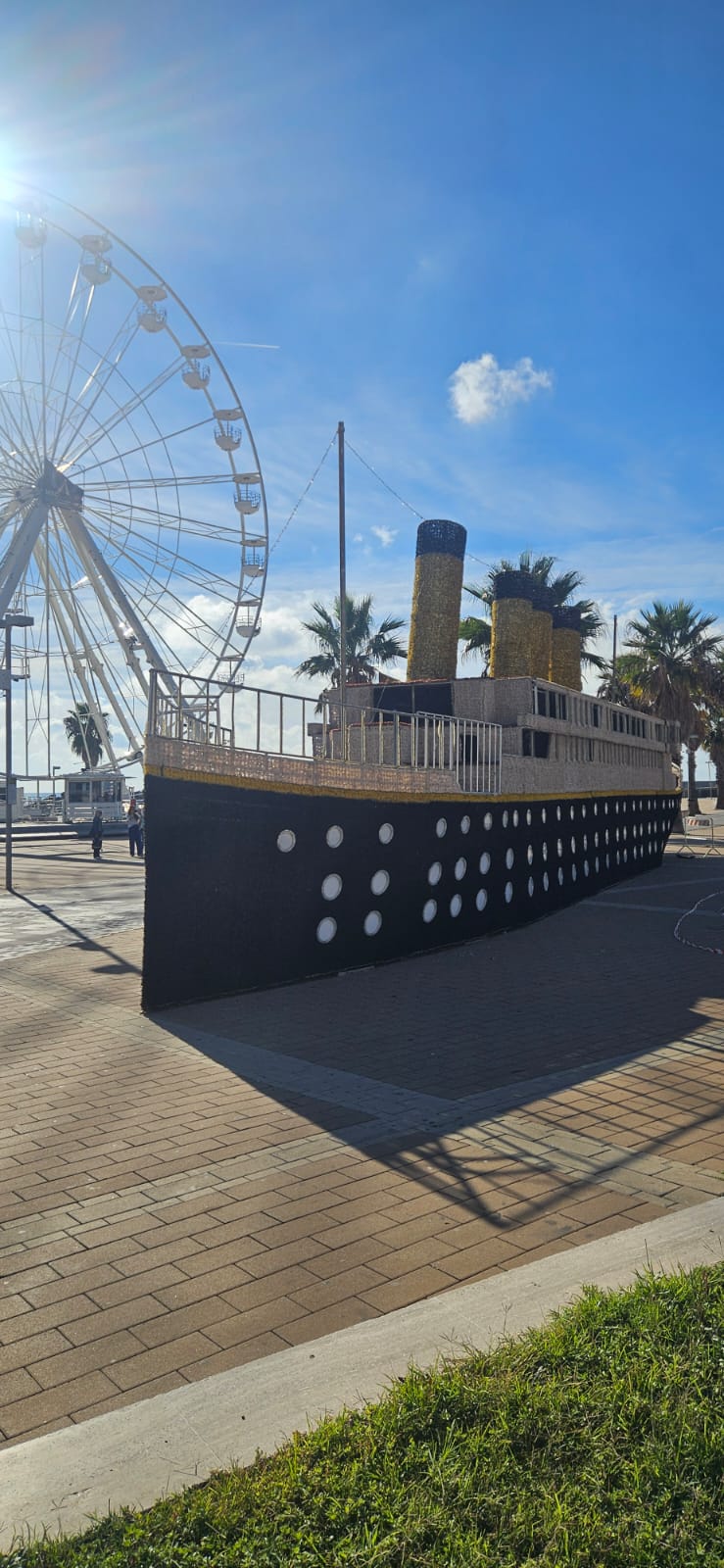 CIVITAVECCHIA – Bizzarro. Quantomeno bizzarro. Stamani Civitavecchia s’è svegliata con una sorpresa, in una fase anticipata di preparazione ed addobbi in vista delle festività natalizie. Perché alla Marina, in piazza e sotto la ruota panoramica laddove fino a poco tempo fa verteva la Statua del Bacio, è fioccato… il Titanic. Una grande nave che si illuminerà nel giro di poche settimane e che per connotati, evidenti i 4 grandi fumaioli, non può che ricordare il celebre relitto.