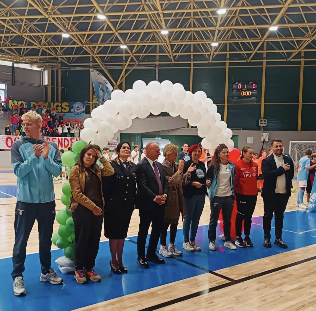 Un torneo già partito da ottobre e che nel pomeriggio del lunedì narrava al Palazzetto dello Sport di Santa Marinella la sua presentazione. Una presentazione di prestigio e piena di ospiti d’onore quella dell’evento realizzato grazie alla collaborazione con un gruppo organizzato da tifosi laziali come Gate 51 sempre tradizionalmente attivissimo nel sociale: a partire da Giuseppe Cangemi vicepresidente del Consiglio di Regione Lazio, presente e gettonatissimo tra sorrisi e selfie anche, a proposito di SS Lazio, il difensore danese Oliver Provstgaard, che non s’è mai tirato indietro e mostrato splendida disponibile per autografi e fotografie con giovani che un giorno sognano di emulare la sua carriera. Presente, modello e punto di riferimento, campionessa paraolimpionica Alessia Scortechini.