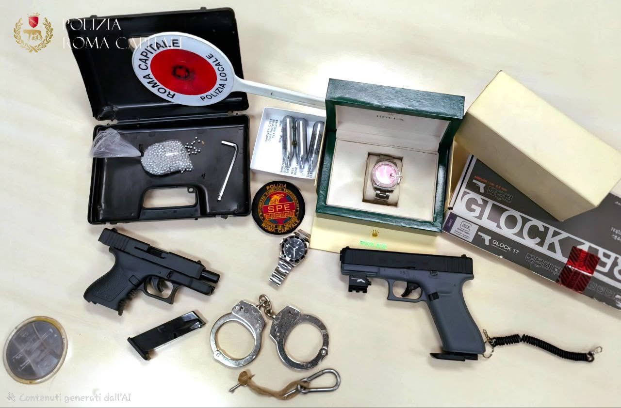 Oltre al sequestro delle armi, il personale della Spe ha trovato e sequestrato di un paio di manette e due orologi Rolex, su cui sono in corso le verifiche per stabilirne provenienza e autenticità.