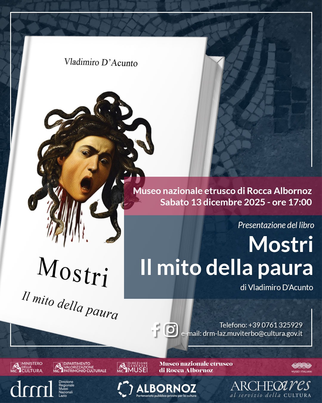 Sabato 13 dicembre, alle ore 17.00, il Museo nazionale etrusco di Rocca Albornoz a Viterbo ospita la presentazione del volume “Mostri. Il mito della paura” di Vladimiro D’Acunto, un percorso originale tra immaginario collettivo, paure sociali e dimensione più intima dell’inconscio.