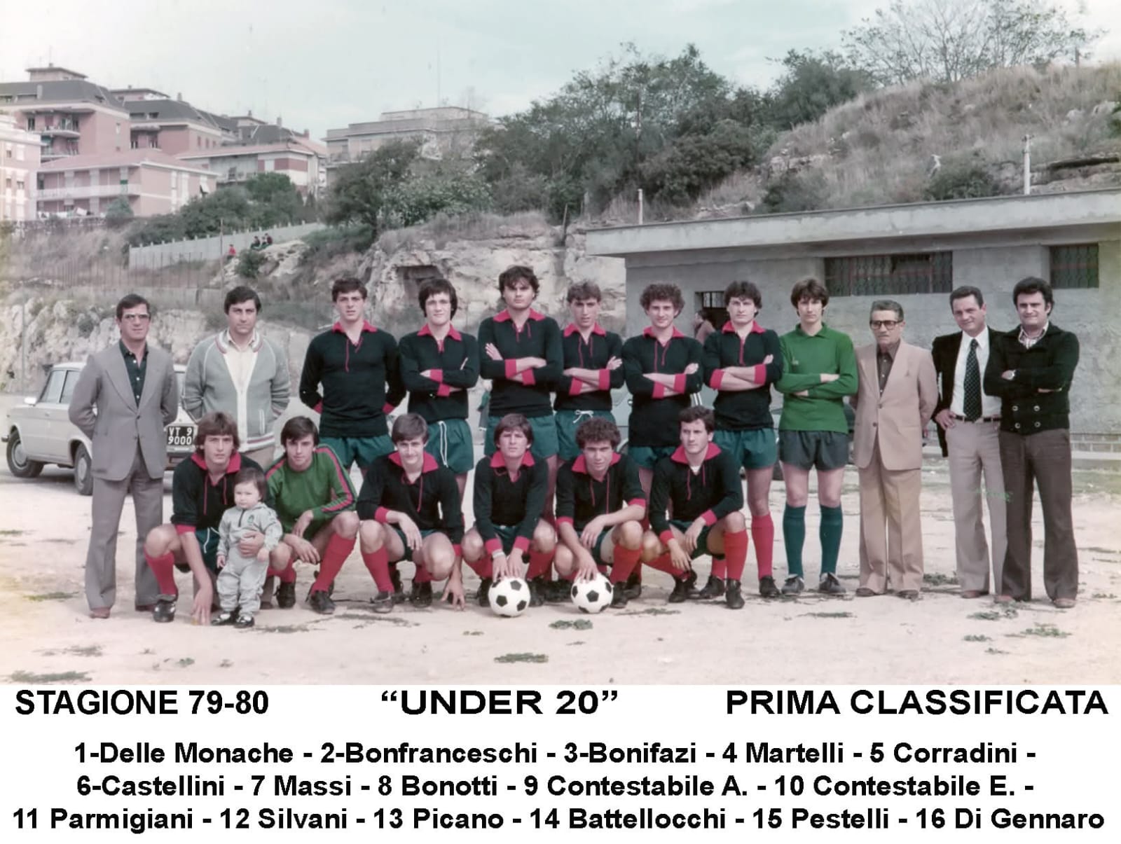 Nelle foto: la formazione del Tarquinia Calcio vincitrice del campionato Under 20 1979-1980, con il tecnico Sergio Gelli (assente alla cena perché indisposto) e alcuni dei dirigenti dell’epoca, a cominciare dal mitico presidente Angelo Riccioni; a distanza di 45 anni, la squadra riunita a cena.