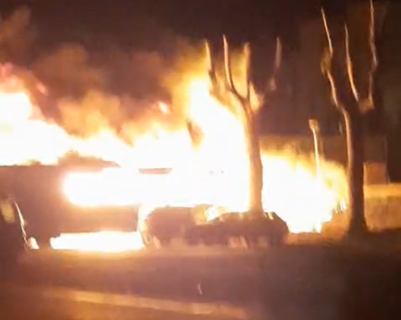 Nelle vicinanze ci sono altre autovetture che sono minacciate dalle fiamme.